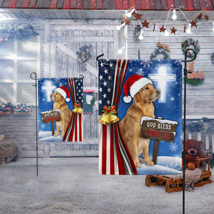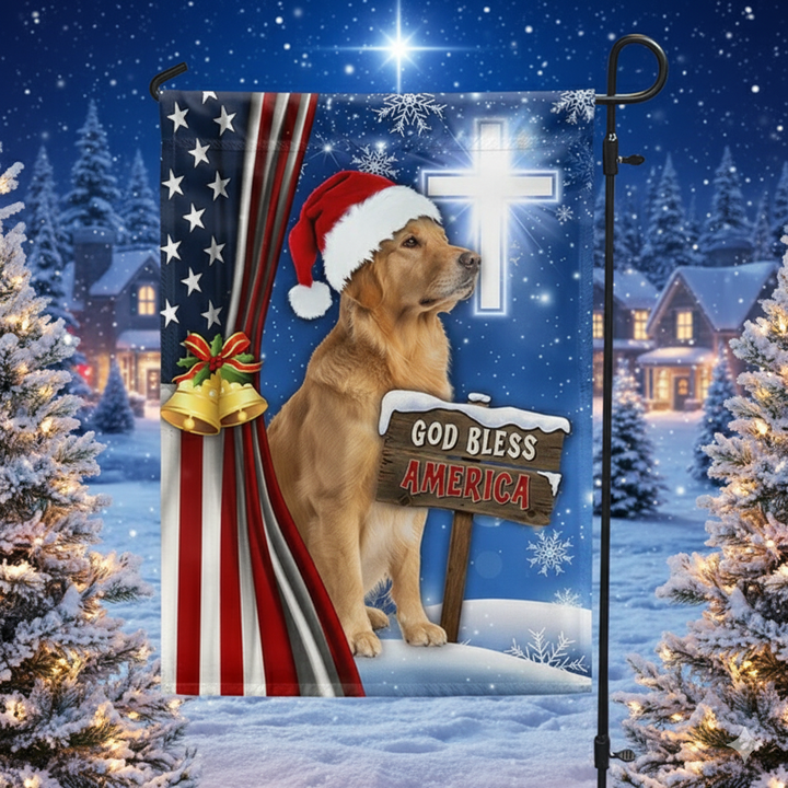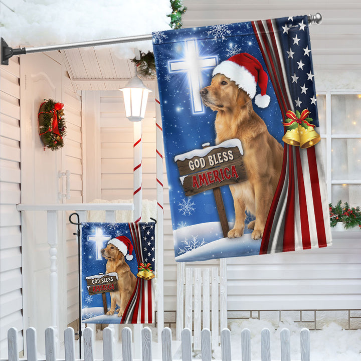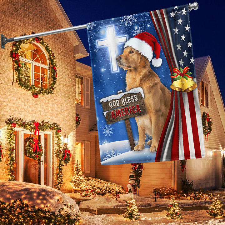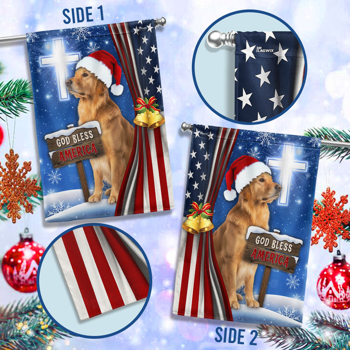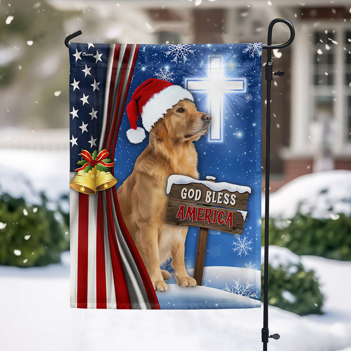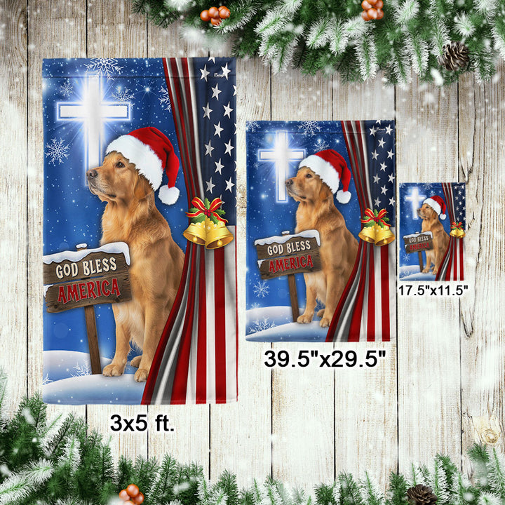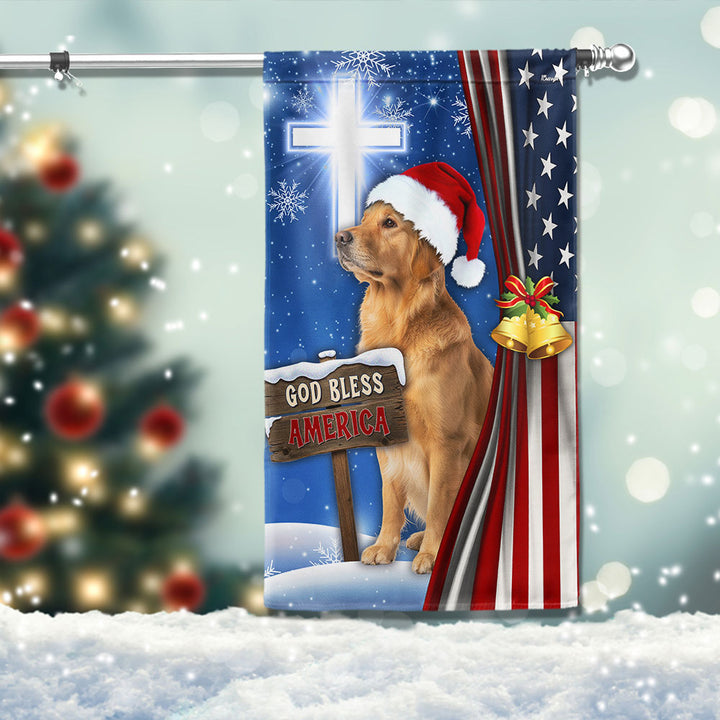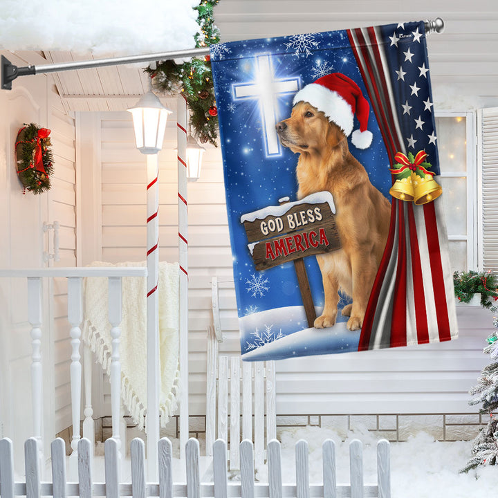 Golden Retriever Christmas Flag | God Bless America Christian Cross Flag