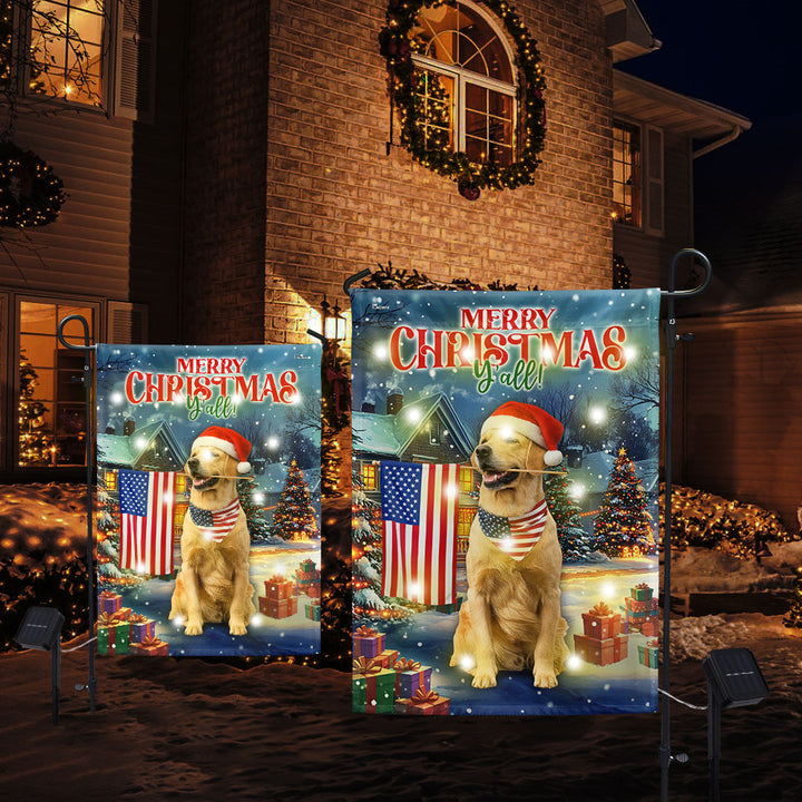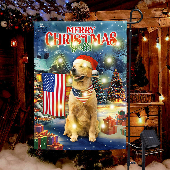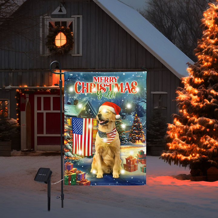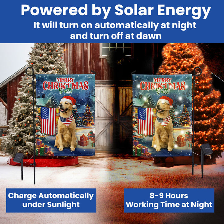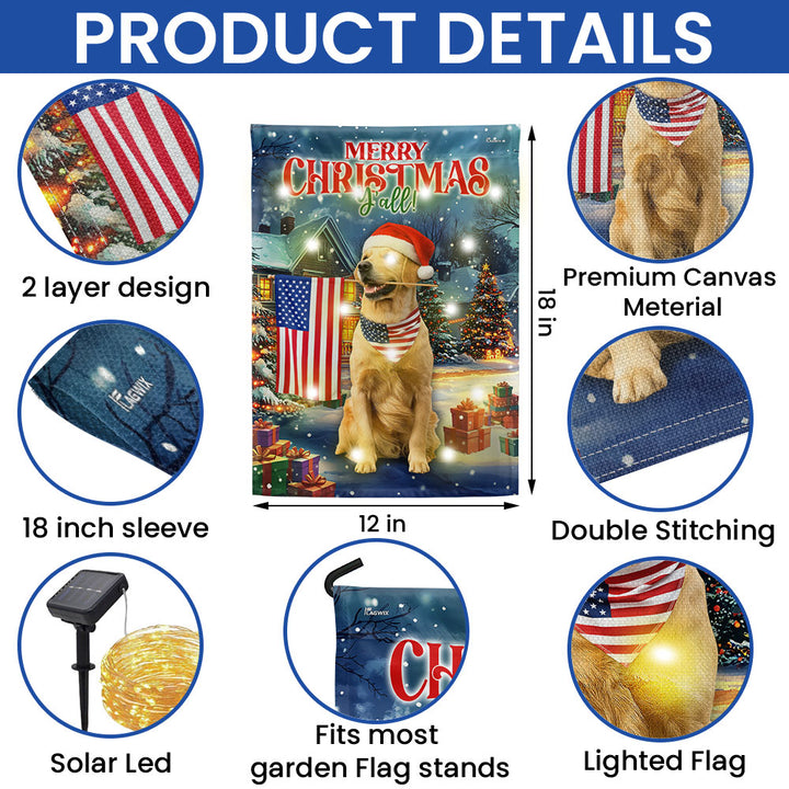 Golden Retriever Christmas Flag | Patriotic American Solar LED Garden Flag