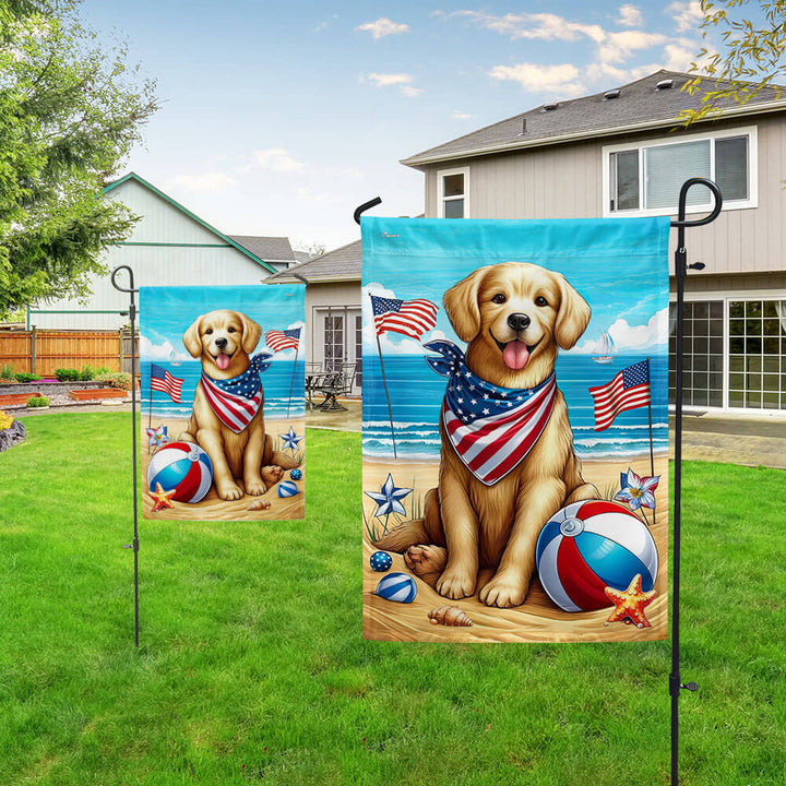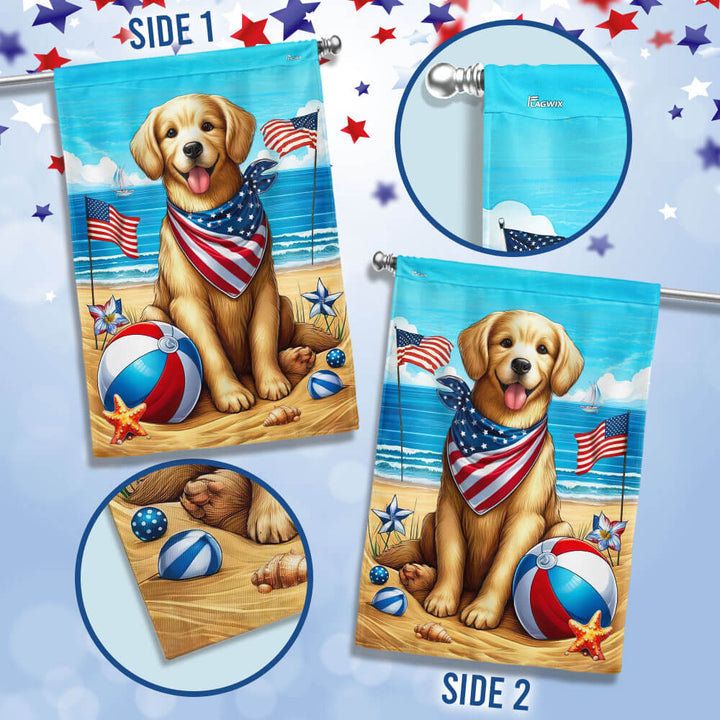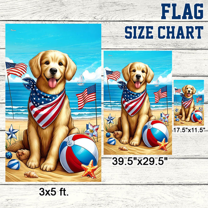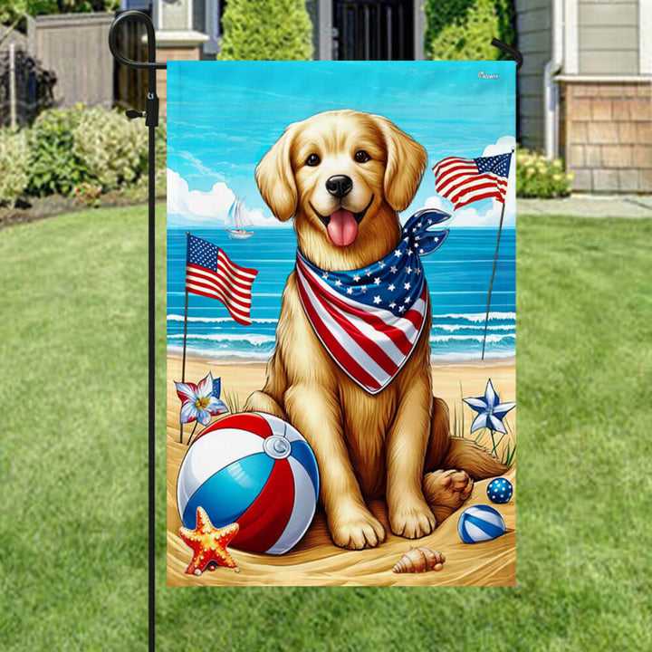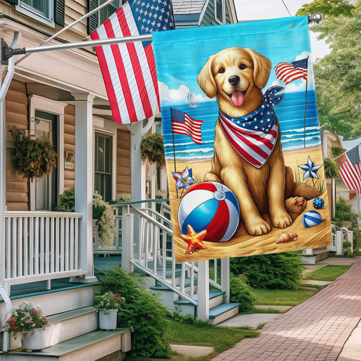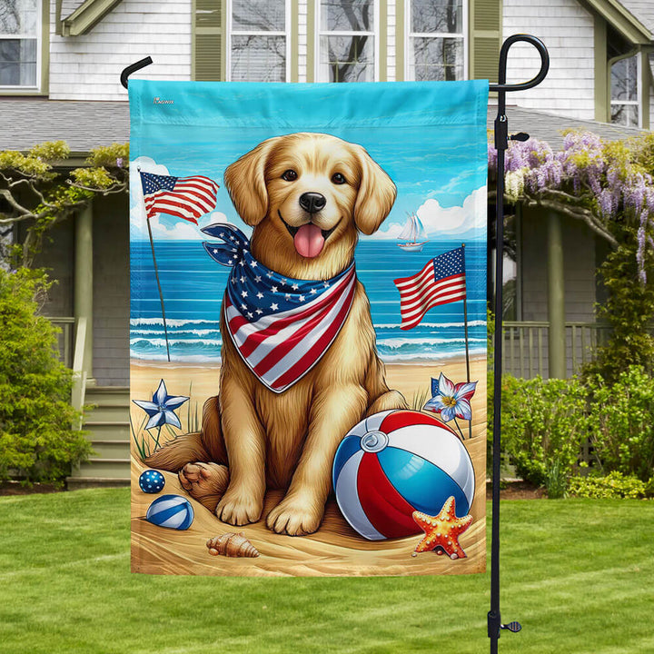 Golden Retriever Dog On The Beach 4th Of July Flag