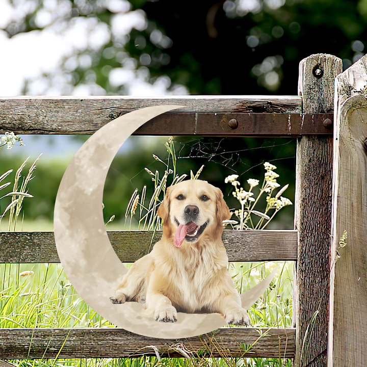Golden Retriever On The Moon Hanging Metal sign QNK1012MSv2