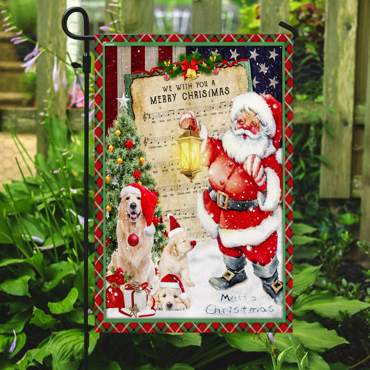 Golden Retriever Santa Hat In The Snow Flag