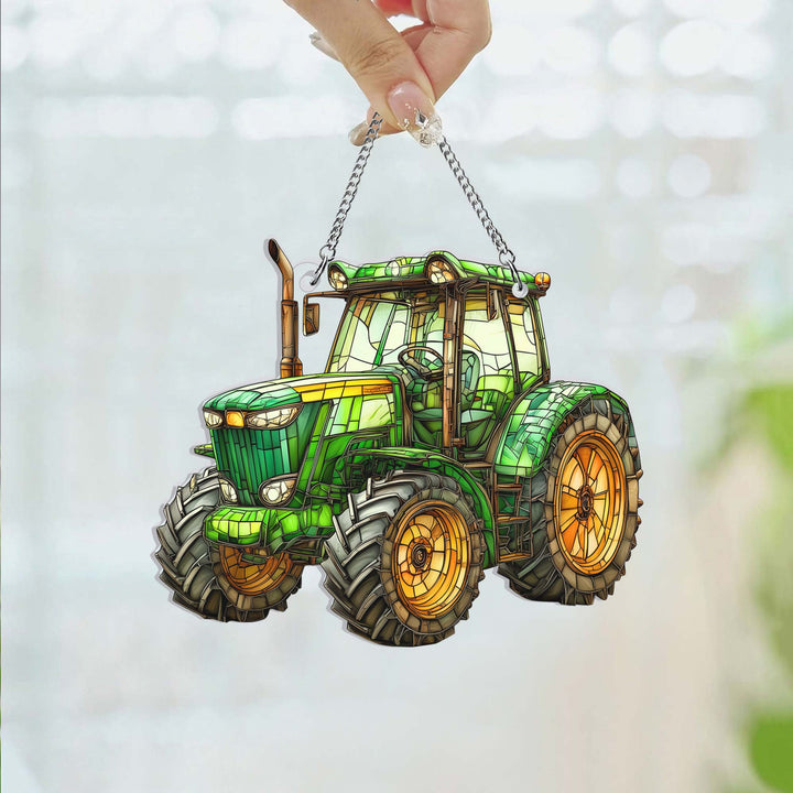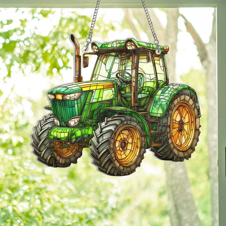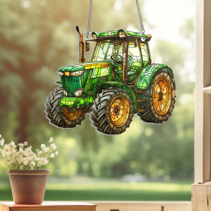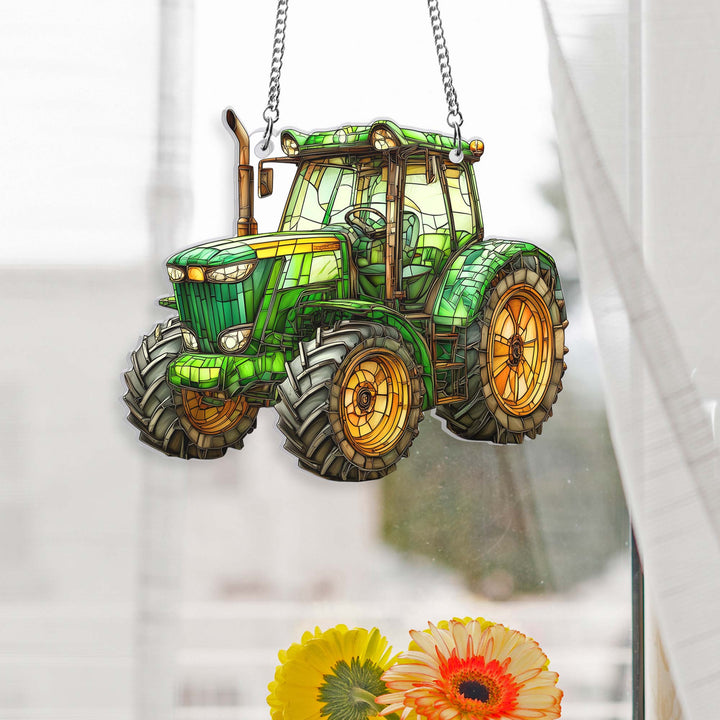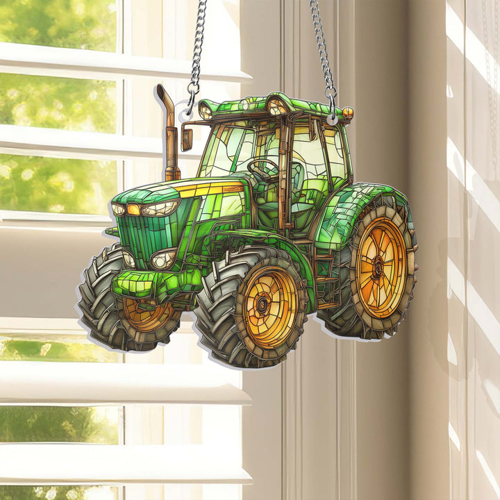Green Tractor Farmer Acrylic Suncatcher Window Hanging