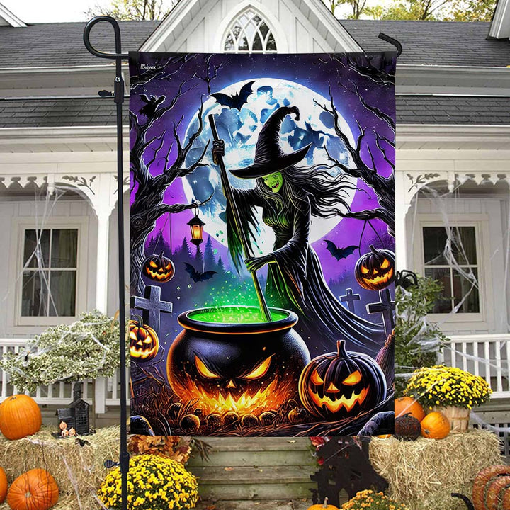 Halloween Spooky Witch Cooking Poison In Cauldron Flag
