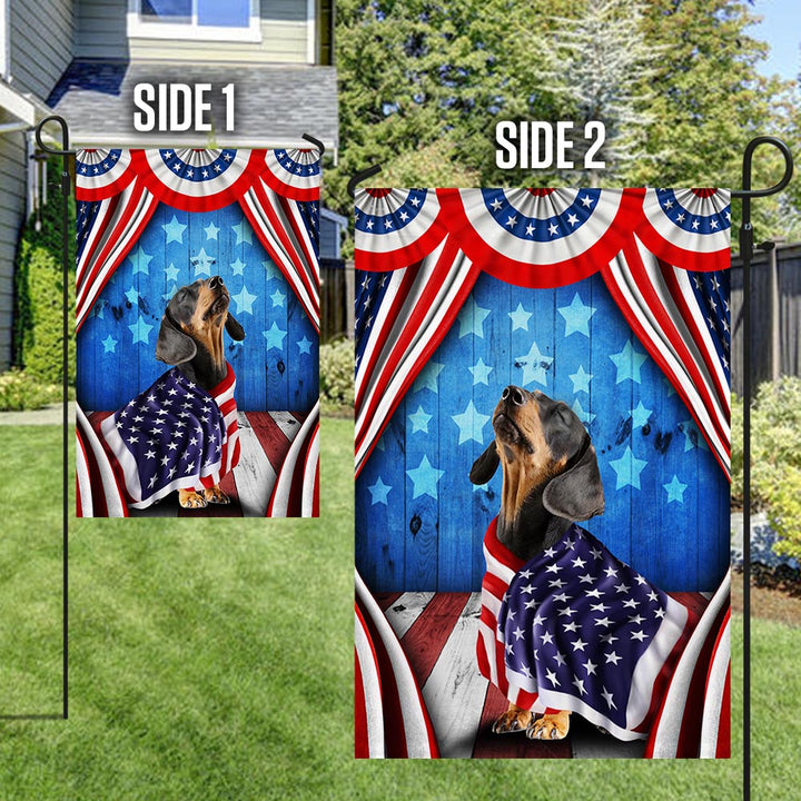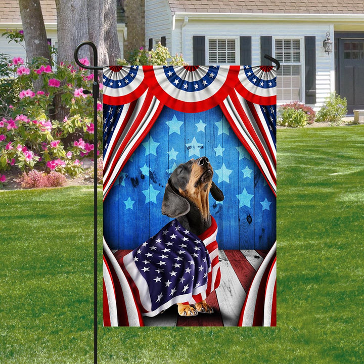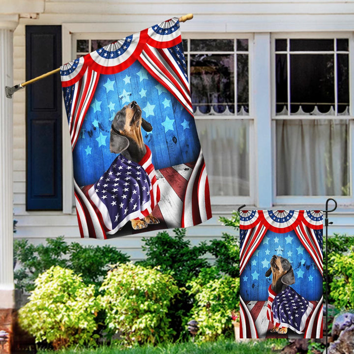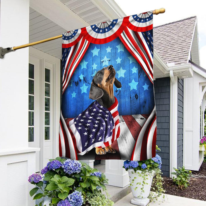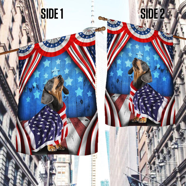 Flagwix American Flag - 4th of july Dachshund American Patriotic Garden Flag Wrapped in Glory TPT898Fv4