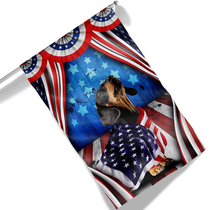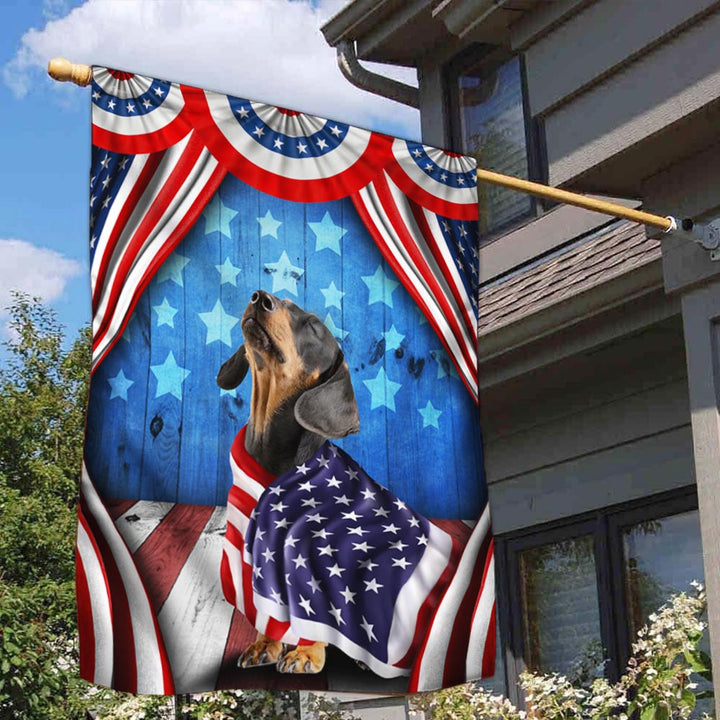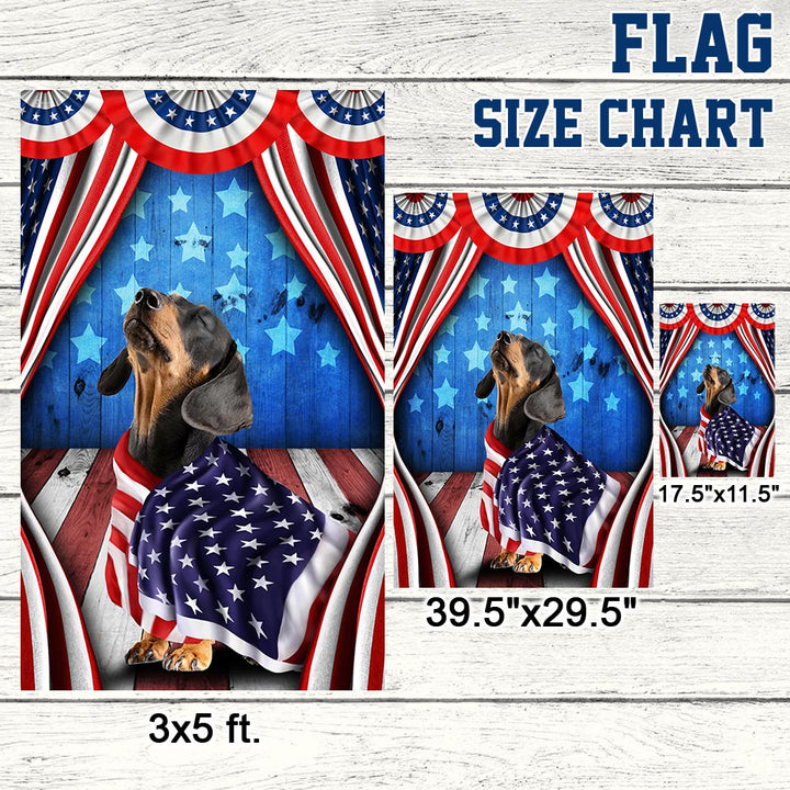 Celebrate your love for freedom and furry friends with this eye-catching 4th of July flag featuring a proud dachshund draped in stars and stripes.