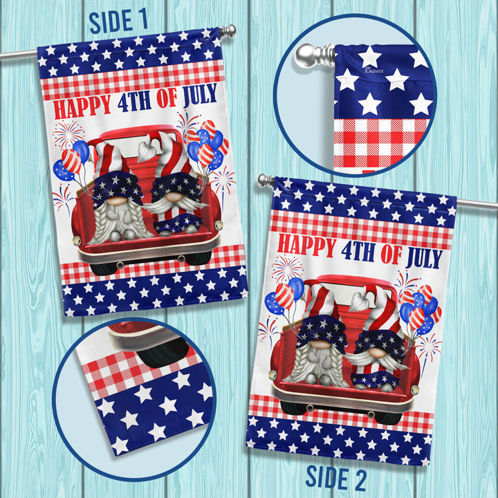 Happy 4th of July Patriotic Gnomes Truck Flag