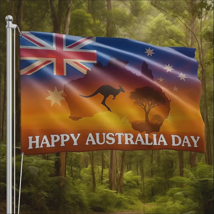 Happy Australia Day 26th January, Kangaroo Australian Map Grommet Flag
