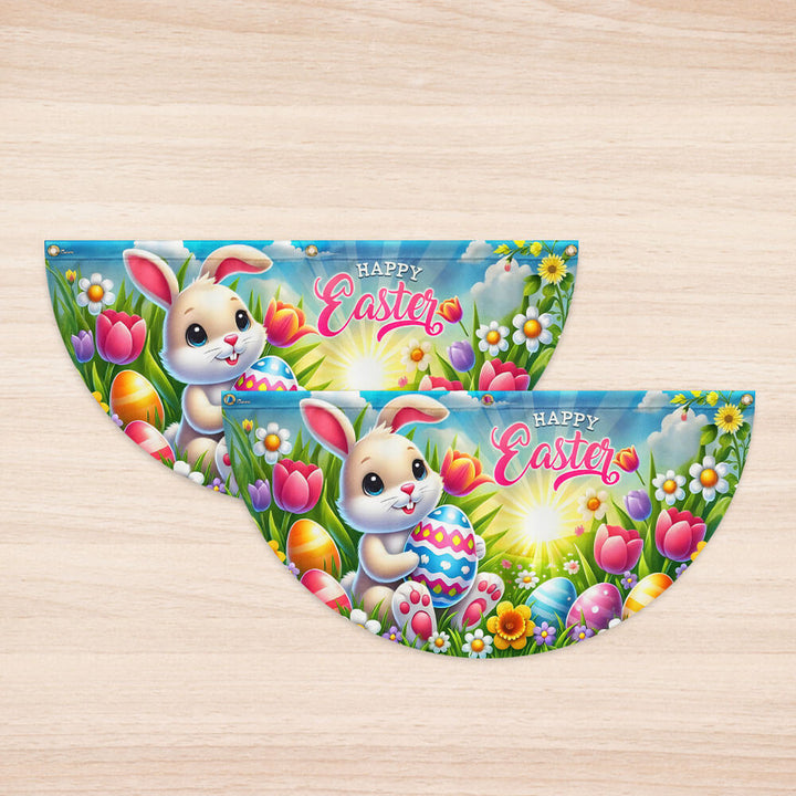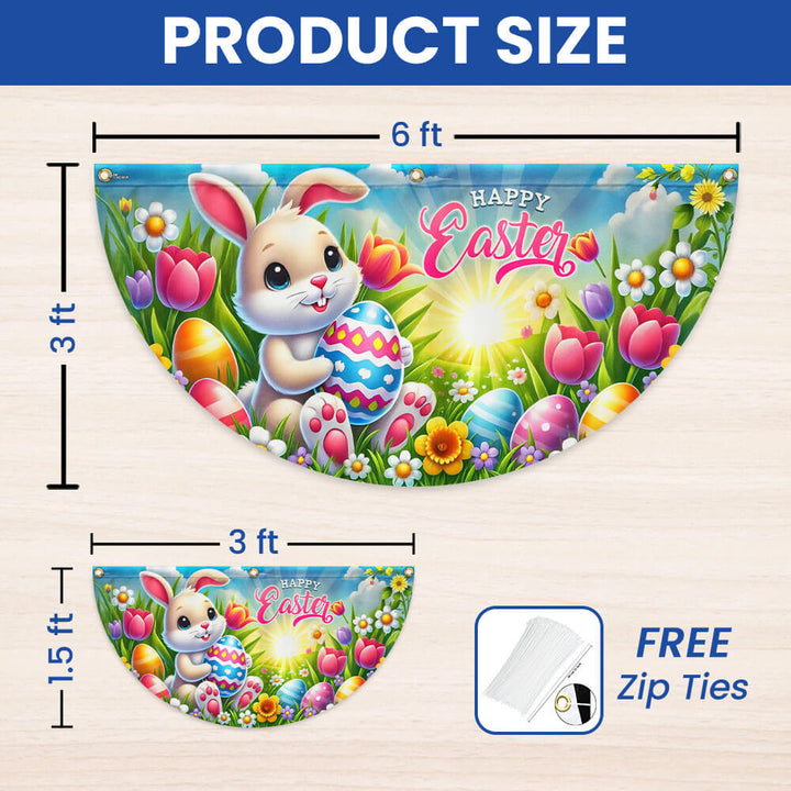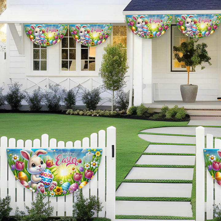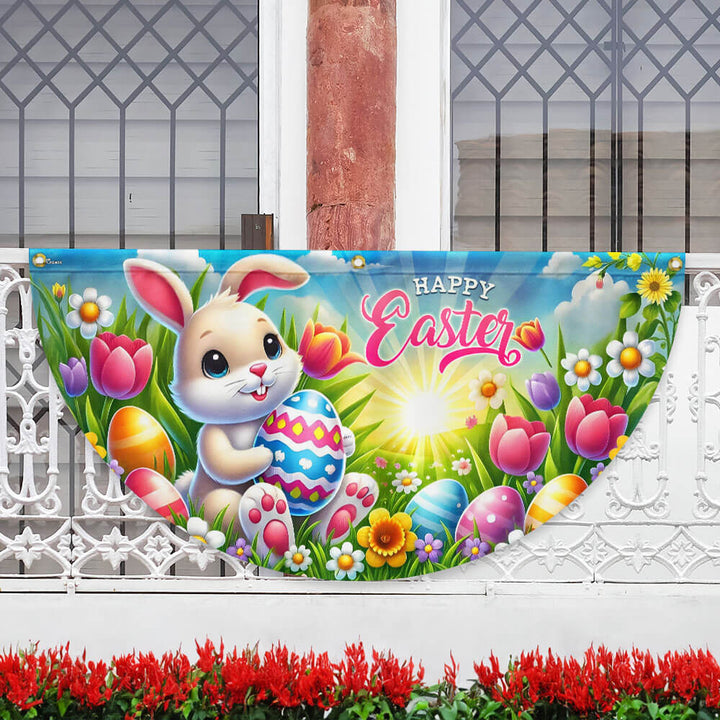 Happy Easter Bunny Rabbit Non-Pleated Fan Flag