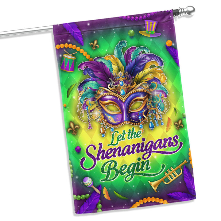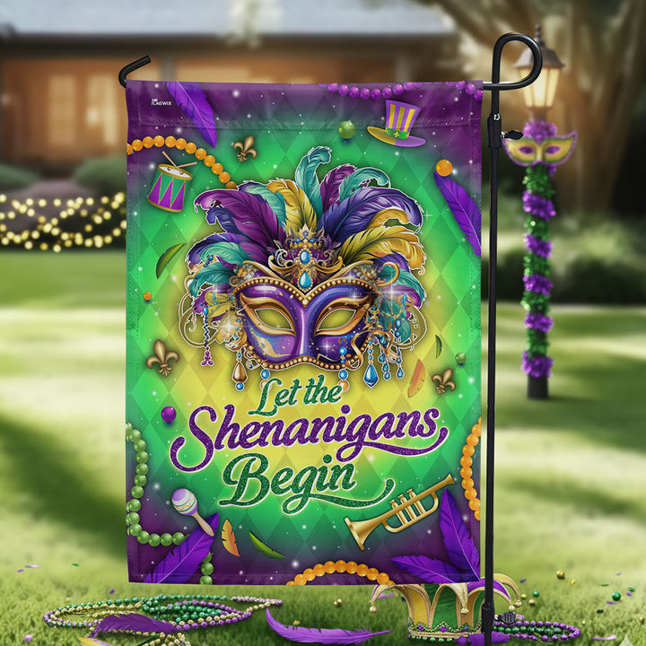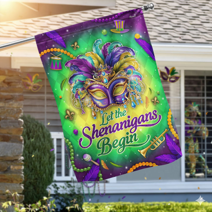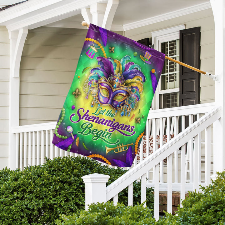 Happy Mardi Gras Mask Flag | Let The Shenanigans Begin Mardi Gras US Flag