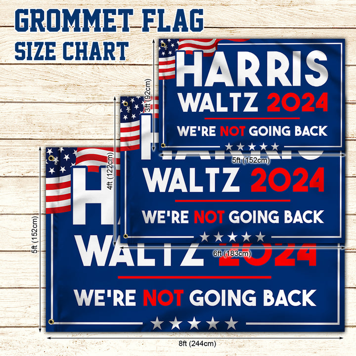 Harris Flag Harris Waltz 2024 We're Not Going Back Grommet Flag