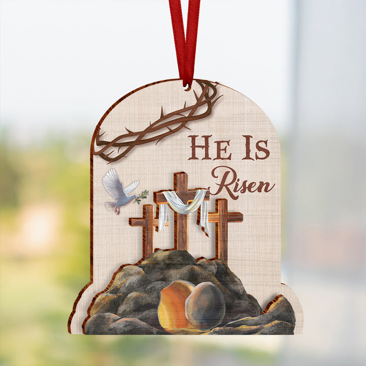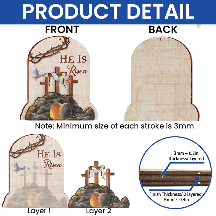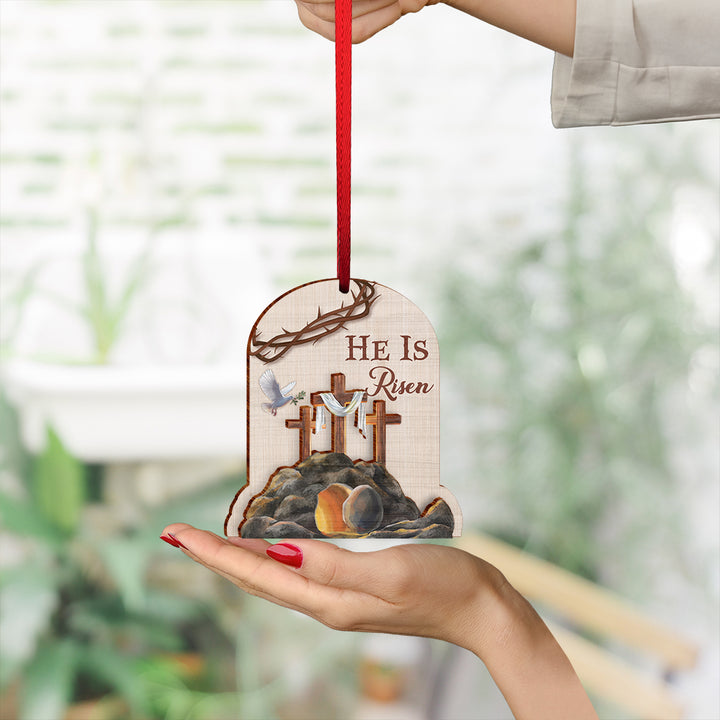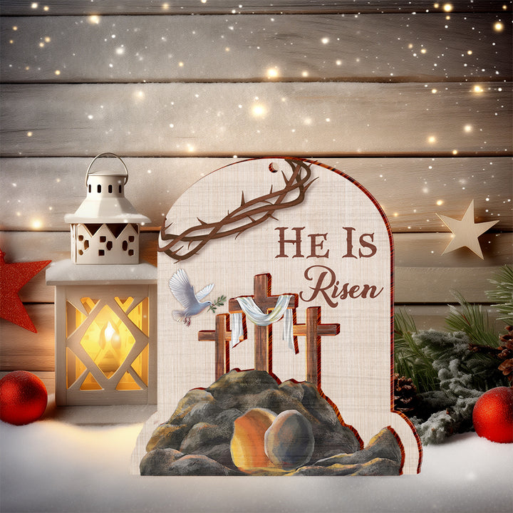 Christmas Ornament, He Is Risen Easter 2 Layered Wooden Ornament
