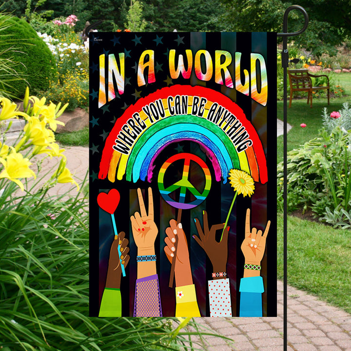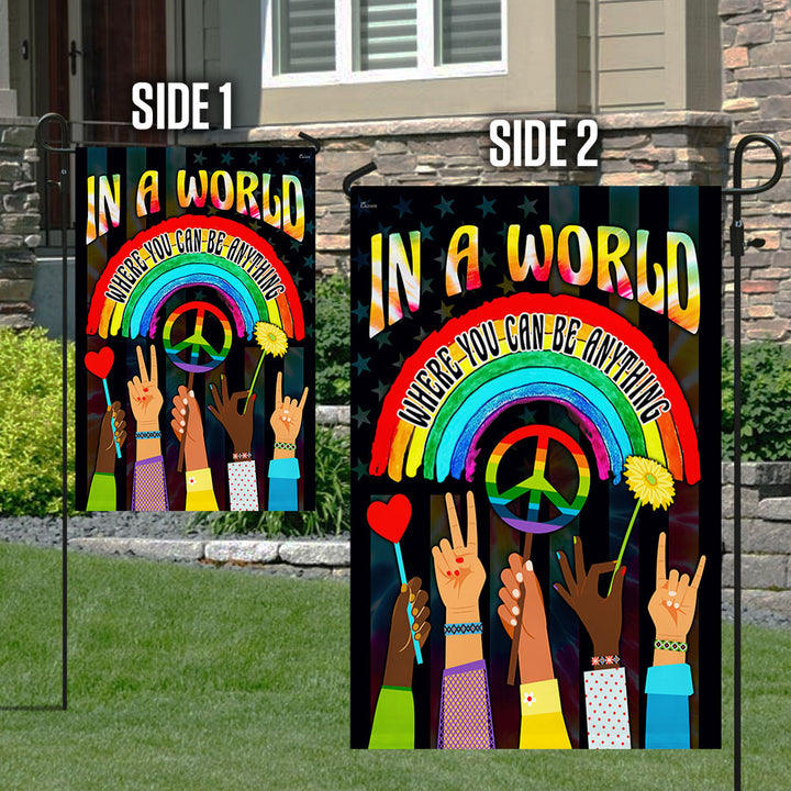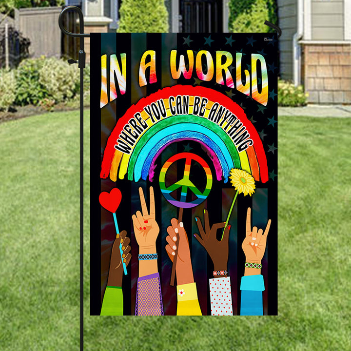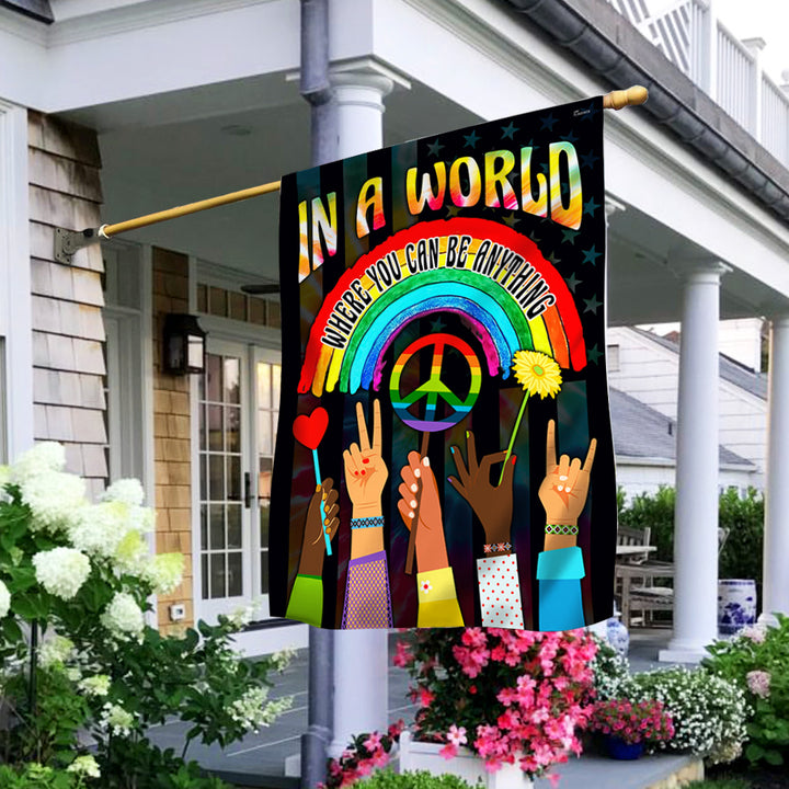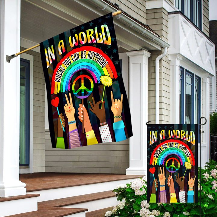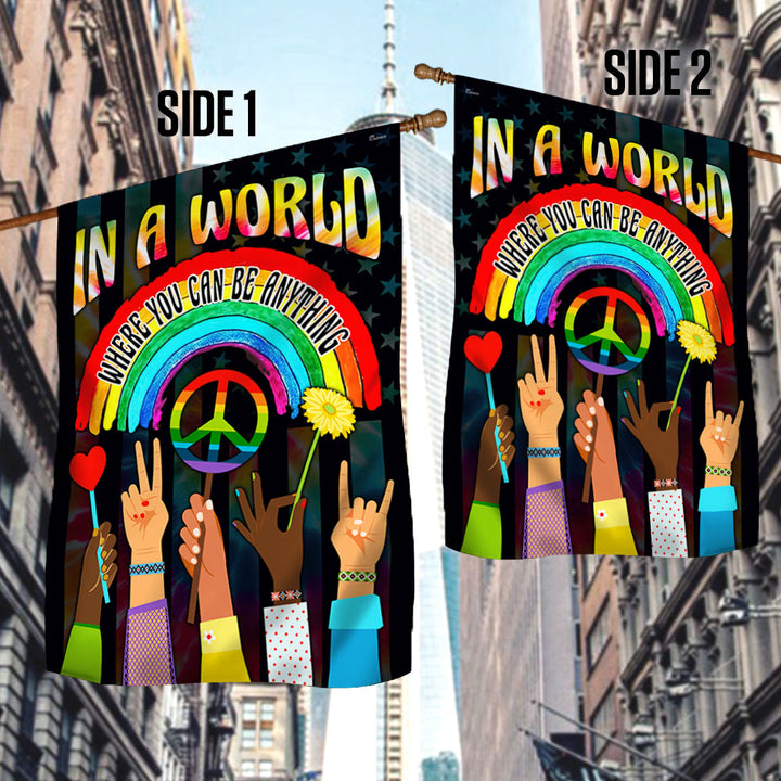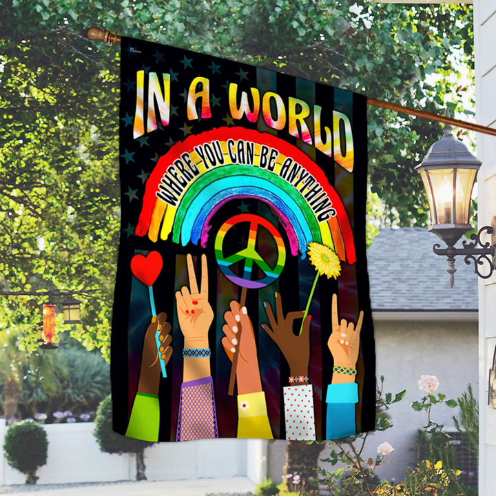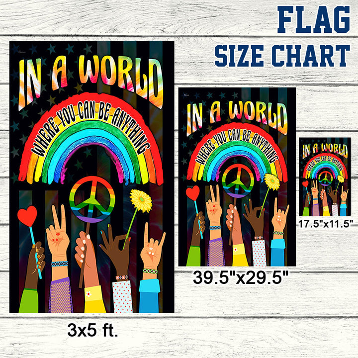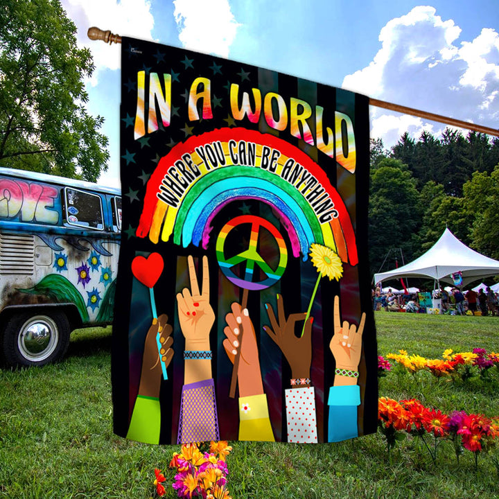 Hippie Peace Flag In A World Where You Can Be Anything Be Kind Flag MLN189Fv2