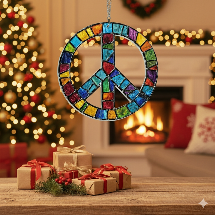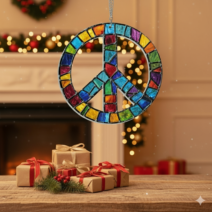 Peace & Love Christmas Ornament – Woodstock Hippie Acrylic Suncatcher, Retro Boho Holiday Decor Gift