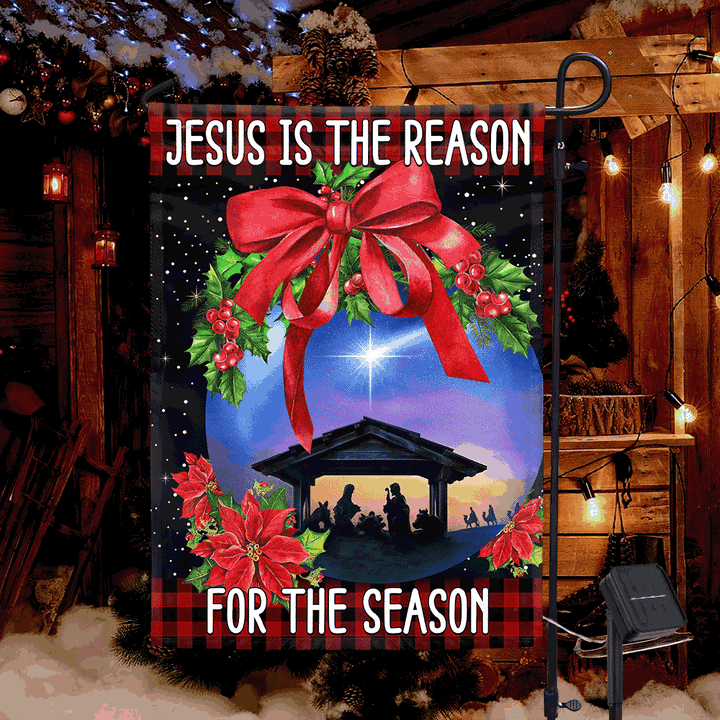 Holy Family, Jesus Is The Reason For The Season Christmas Solar Led Garden Flag