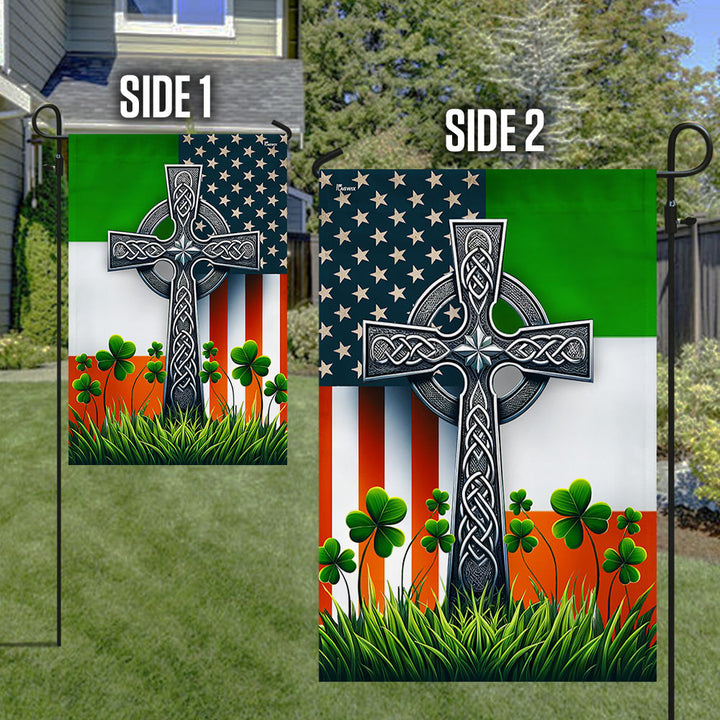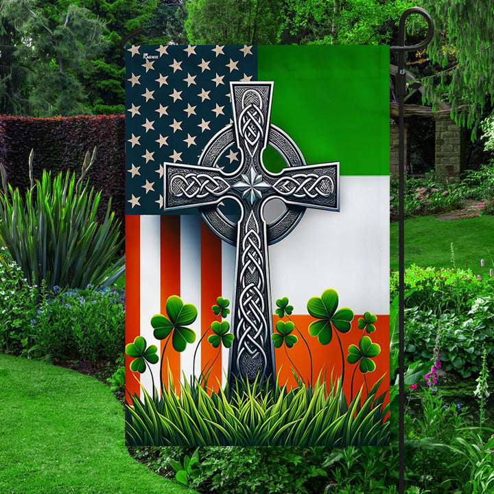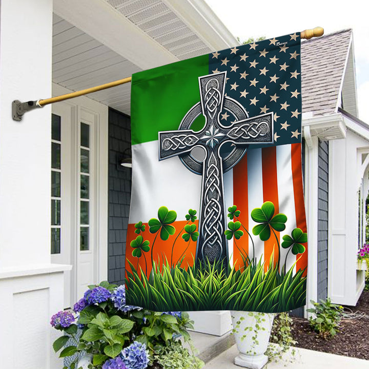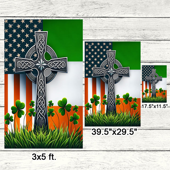 FLAGWIX Irish American Celtic Cross Shamrocks Flag