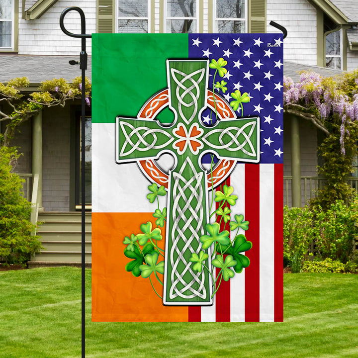 FLAGWIX Irish Celtic Knot Cross Irish and American Flag