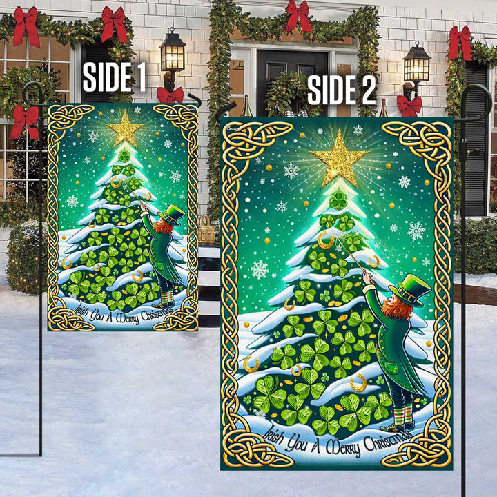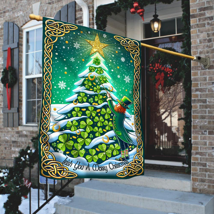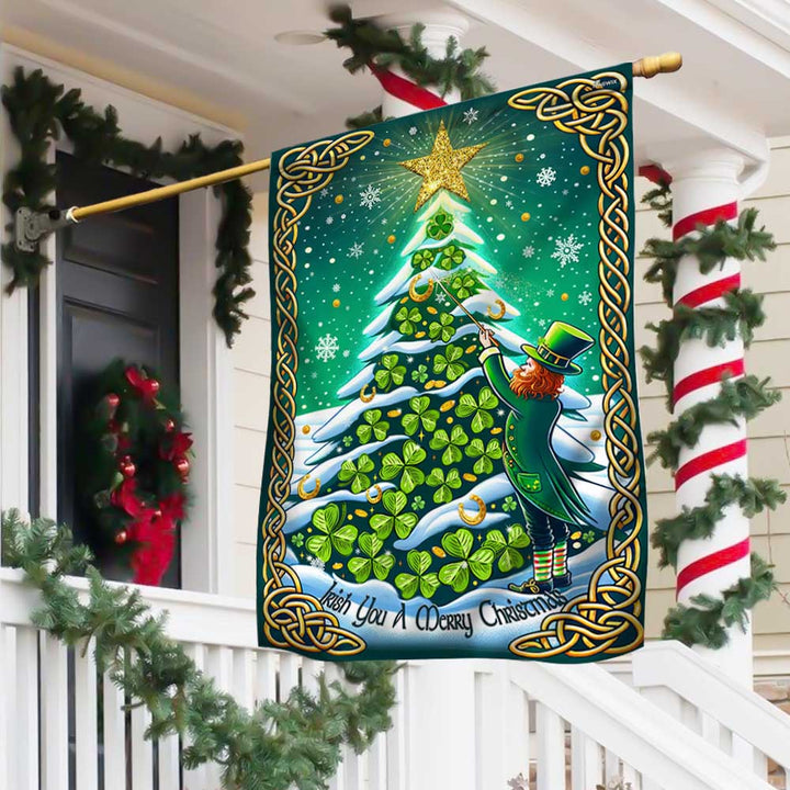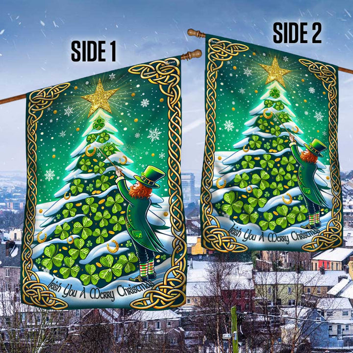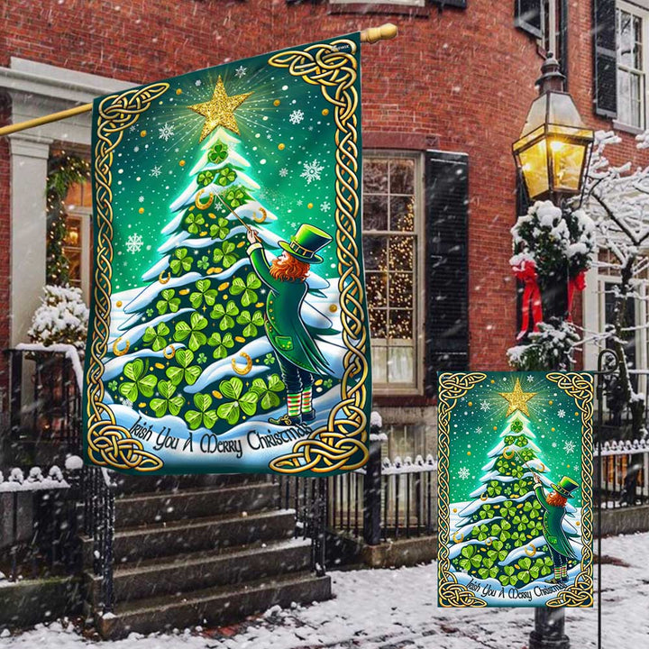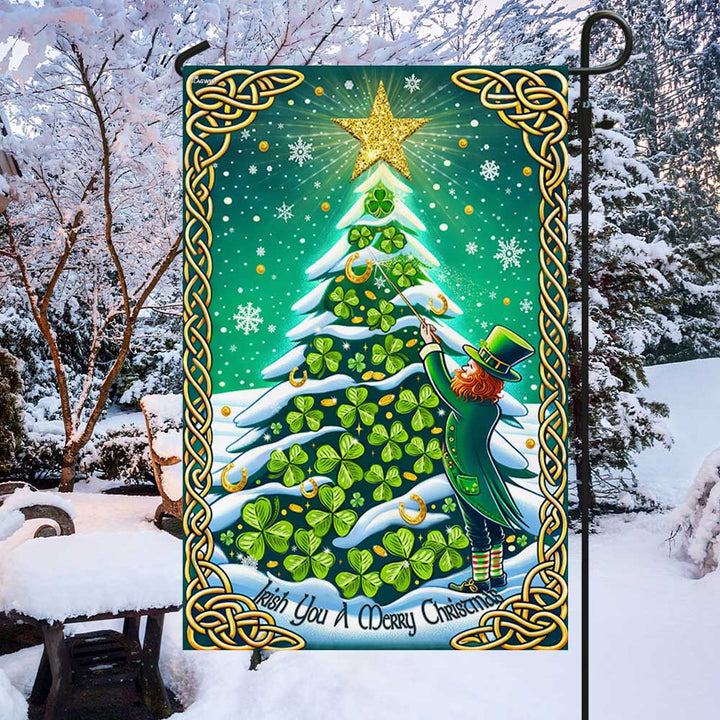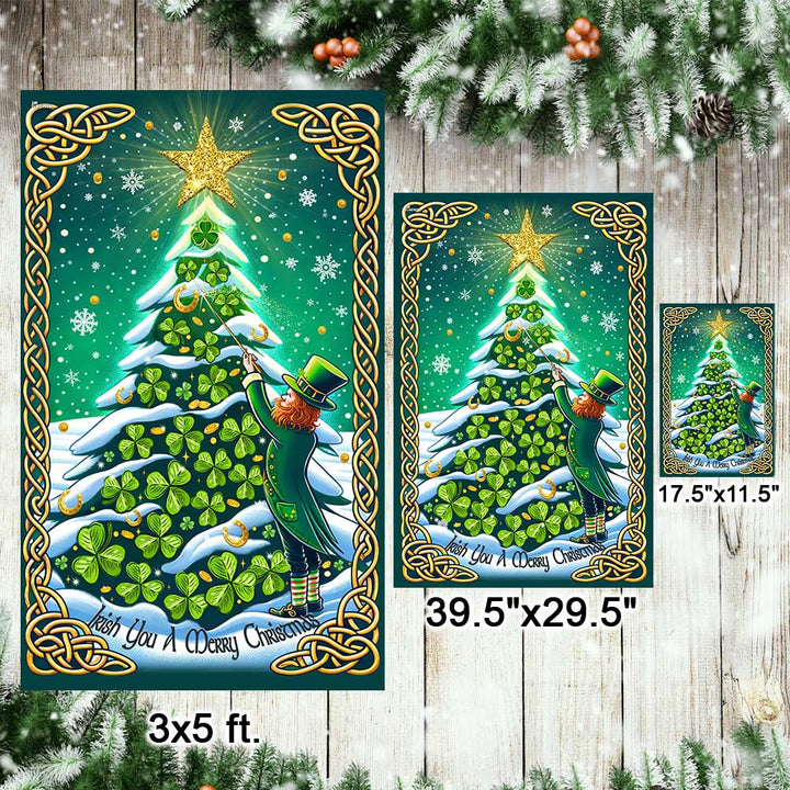 Irish Christmas Flag Leprechaun and Irish Shamrocks Christmas Tree