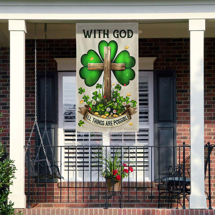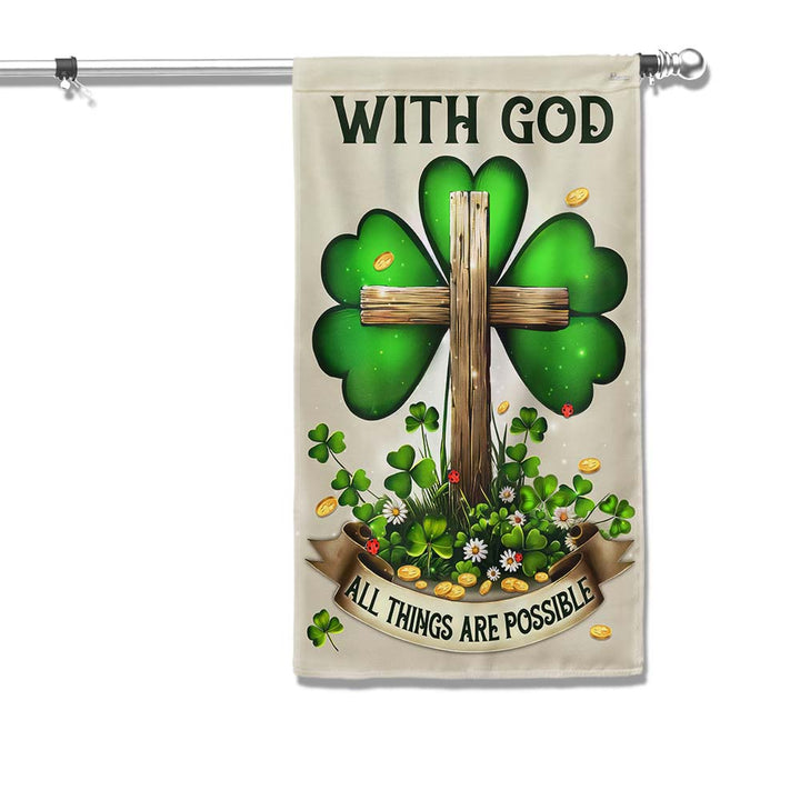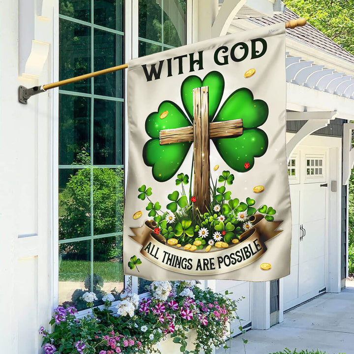 Irish St Patricks Day Shamrock With God All Things Are Possible Flag