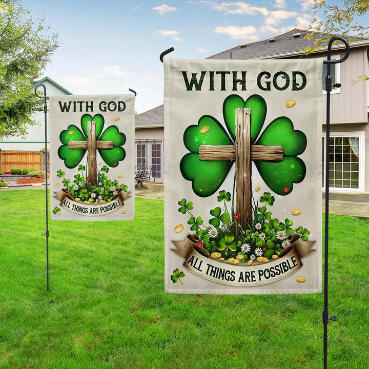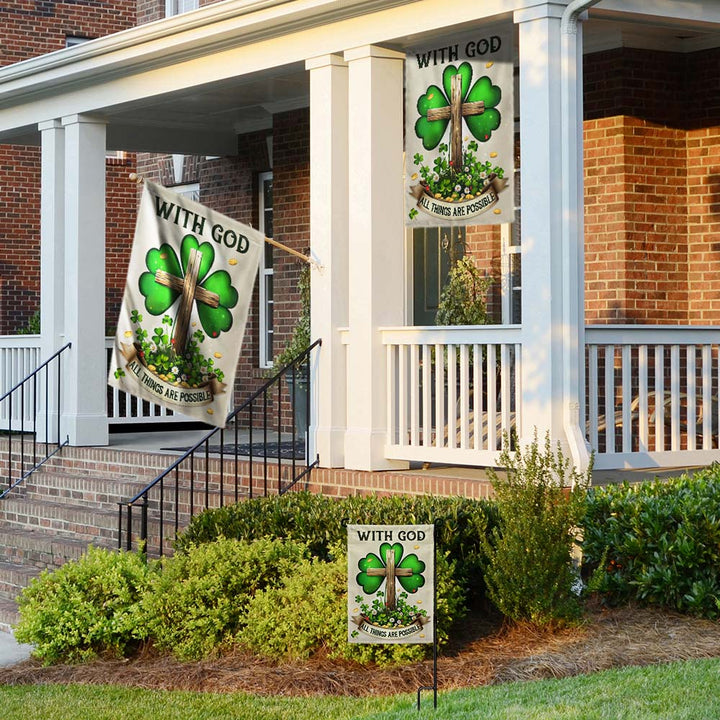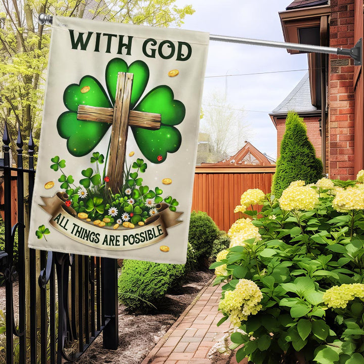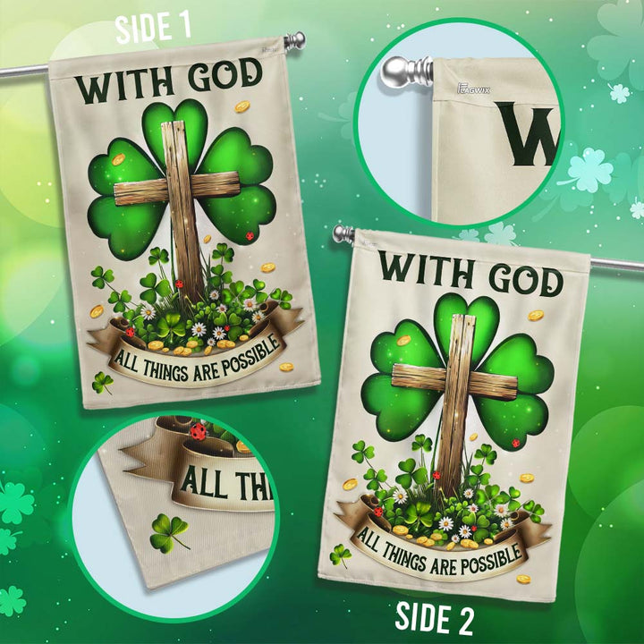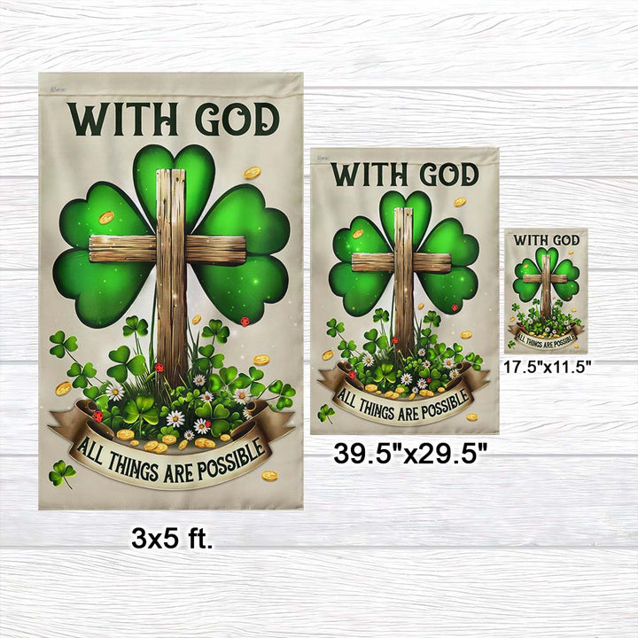 FLAGWIX Irish St Patricks Day Shamrock With God All Things Are Possible Flag