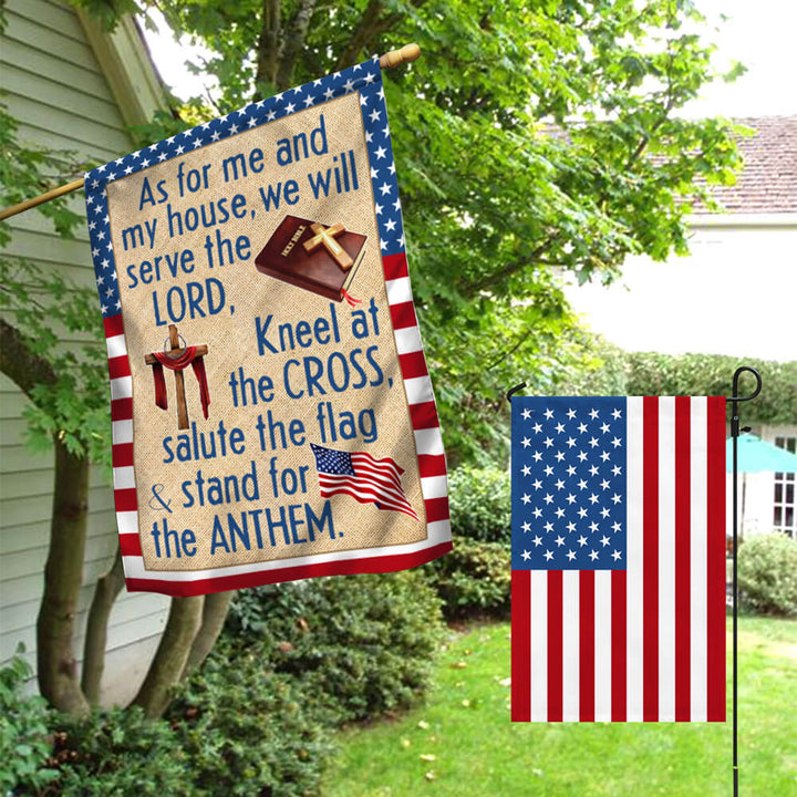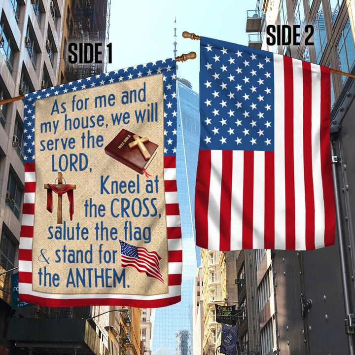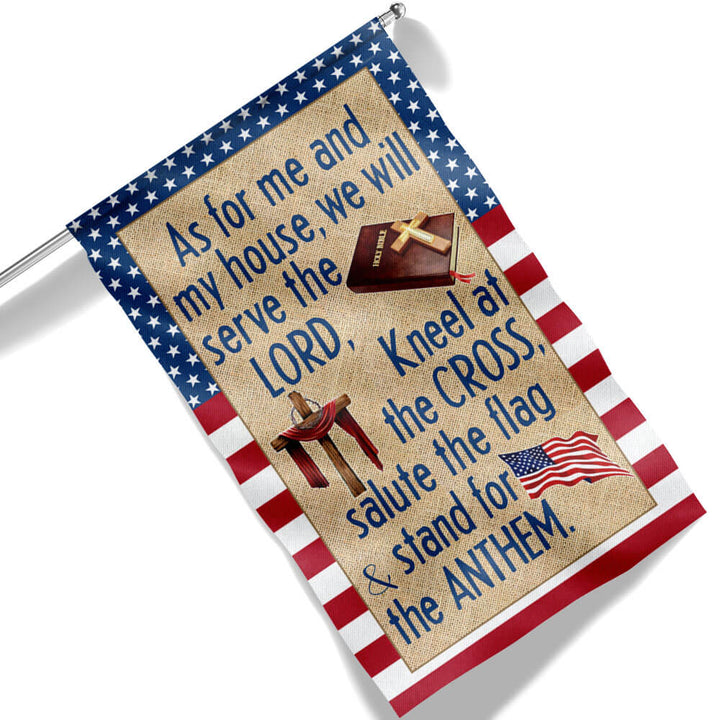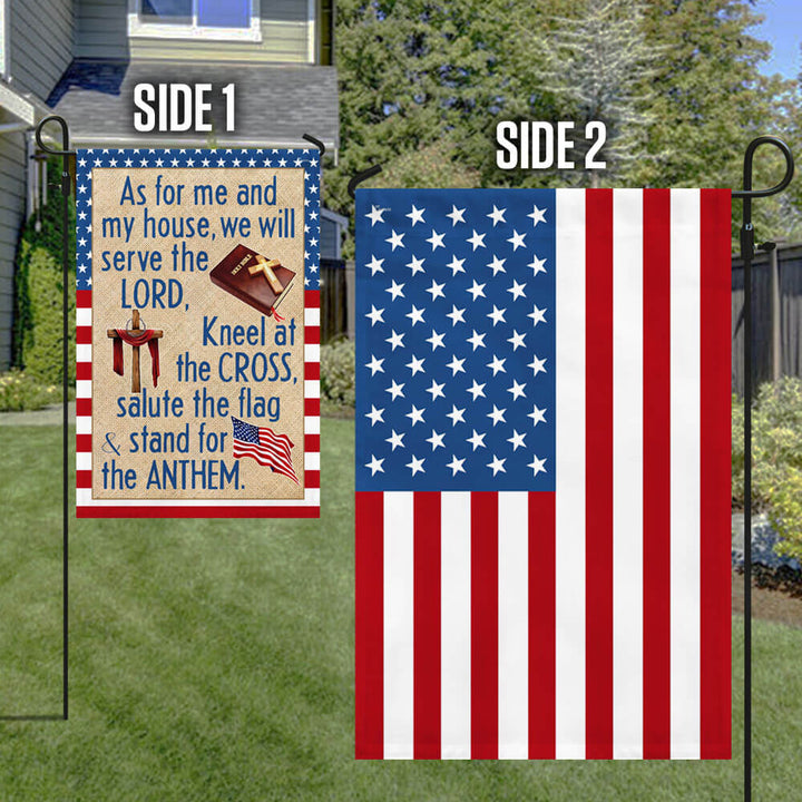 Jesus Christian Cross American Flag As For Me And My House We Will Serve The Lord Two-Sided Flag