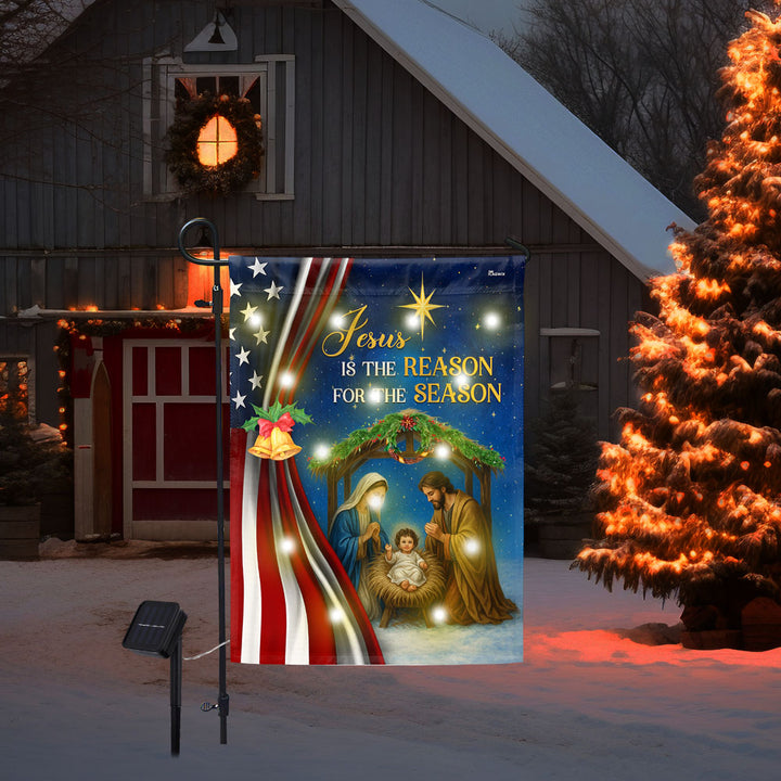 Jesus Christmas Flag | Jesus Is The Reason For The Season Solar Led Flag