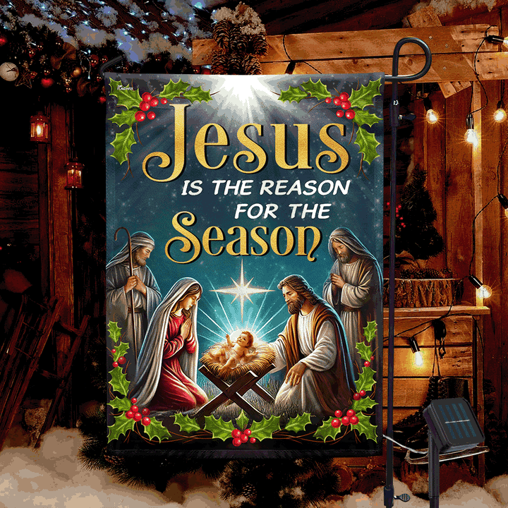 Jesus Is the Reason for the Season Nativity Of Jesus Christmas Solar LED Garden Flag