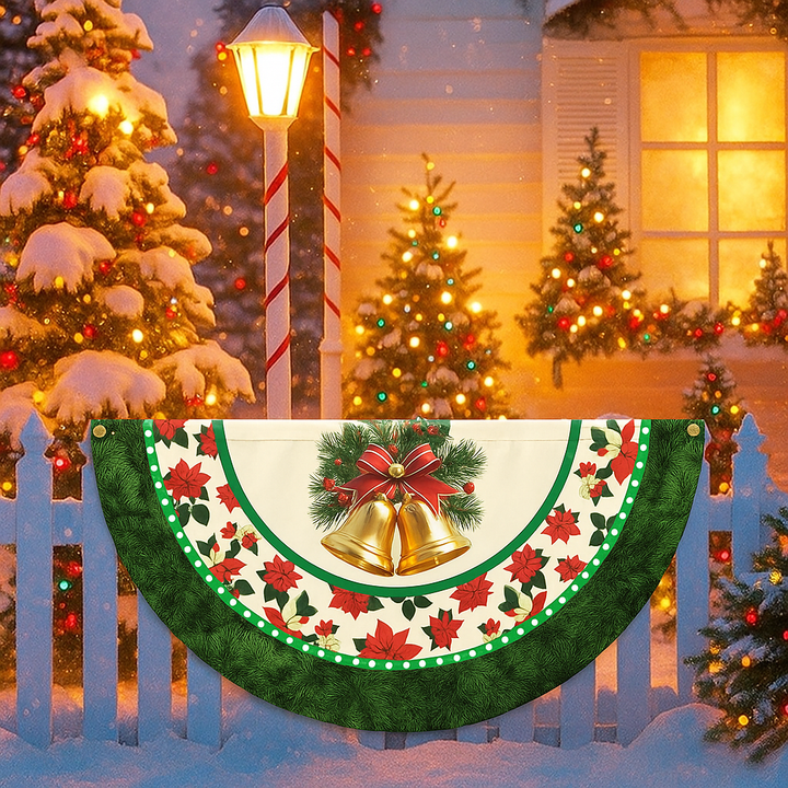 Add festive charm to your home with this beautifully designed fan flag featuring vibrant Jingle Bells, Poinsettia Flowers, and Christmas Tree Leaves. Made from durable canvas and double-sided for maximum visibility, this Christmas bunting brings seasonal joy to any indoor or outdoor setting.