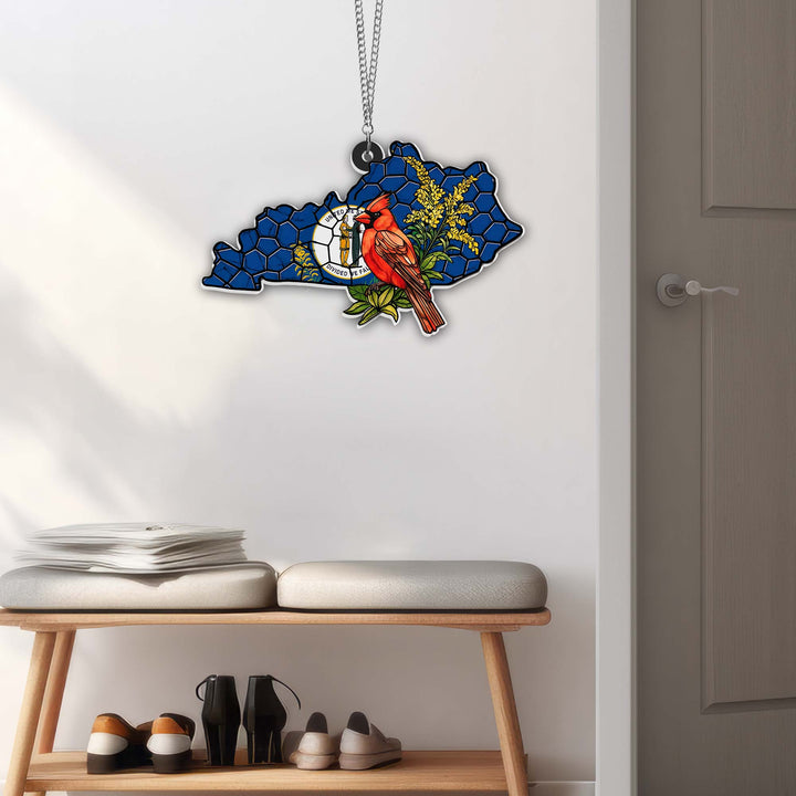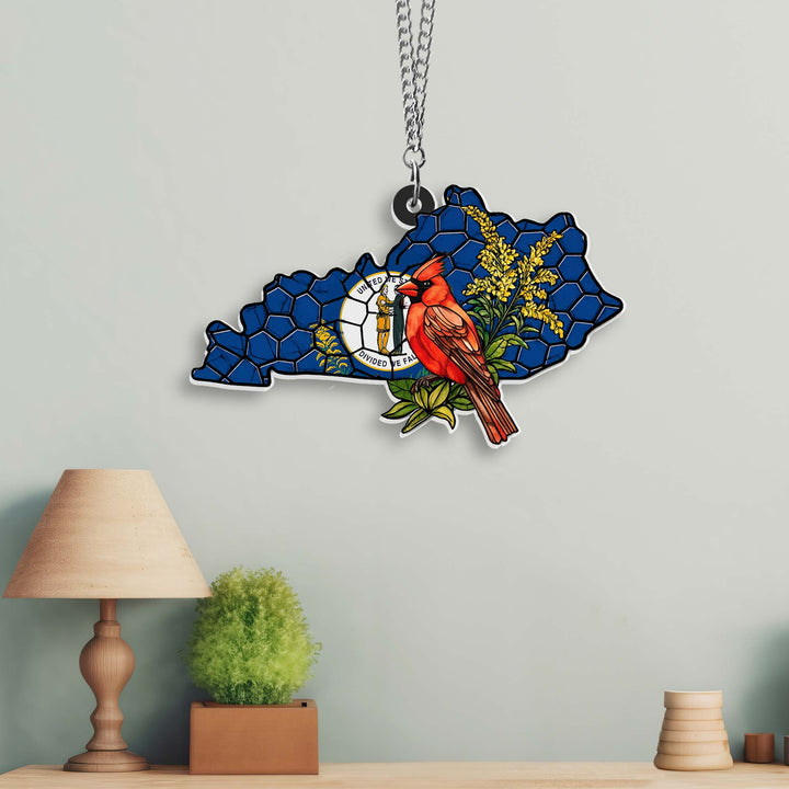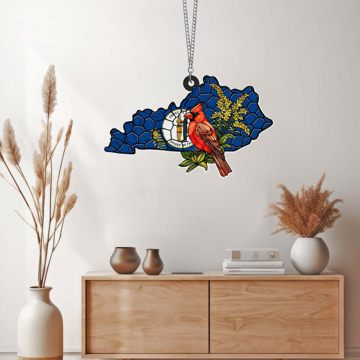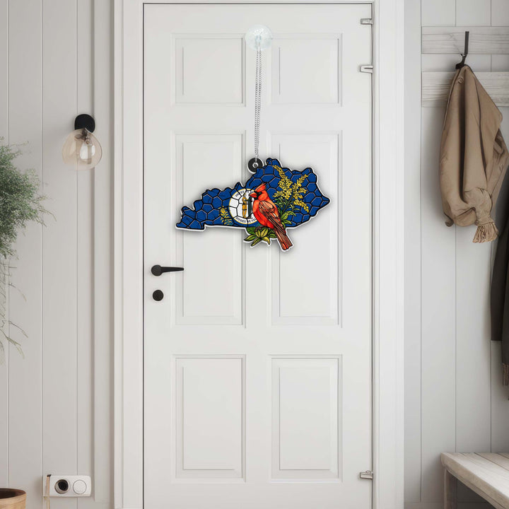 Kentucky Cardinal Suncatcher | Goldenrod Flower Acrylic Hanging Decor