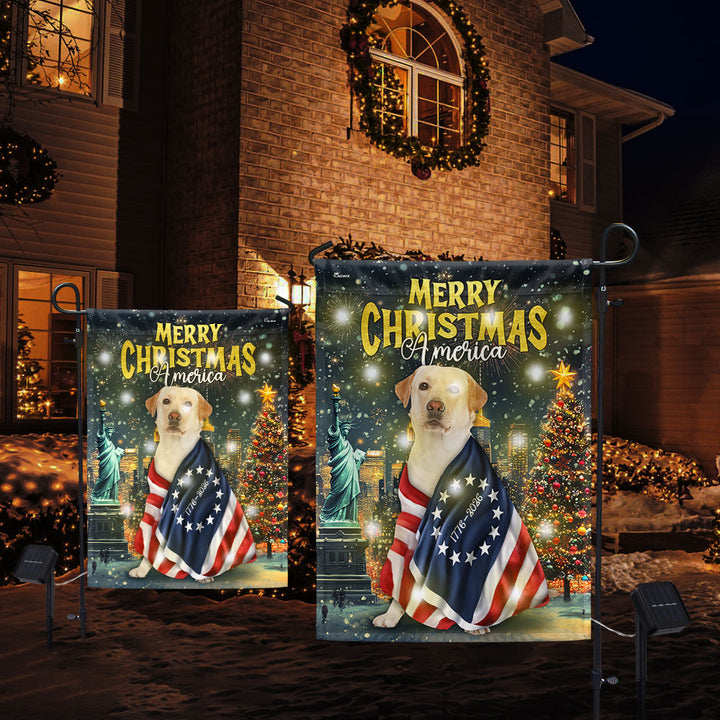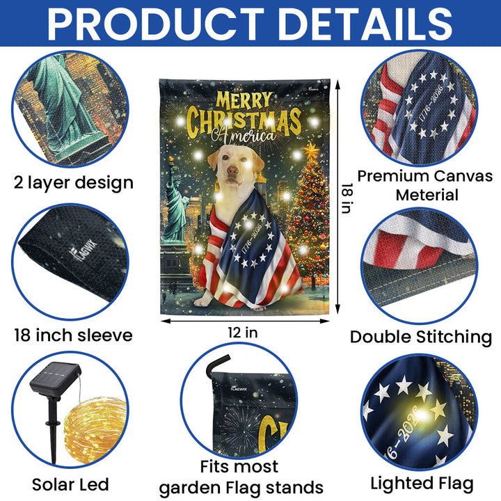Labrador Retriever Flag | 250th Merry Christmas America Solar Led Flag