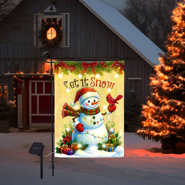 Let It Snow Snowman Flag | Cardinal Winter Christmas Solar LED Flag