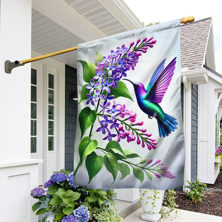 Lilac Branch and Hummingbird Flag