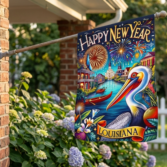 FLAGWIX Louisiana Happy New Year Pelican Flag
