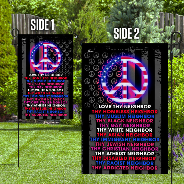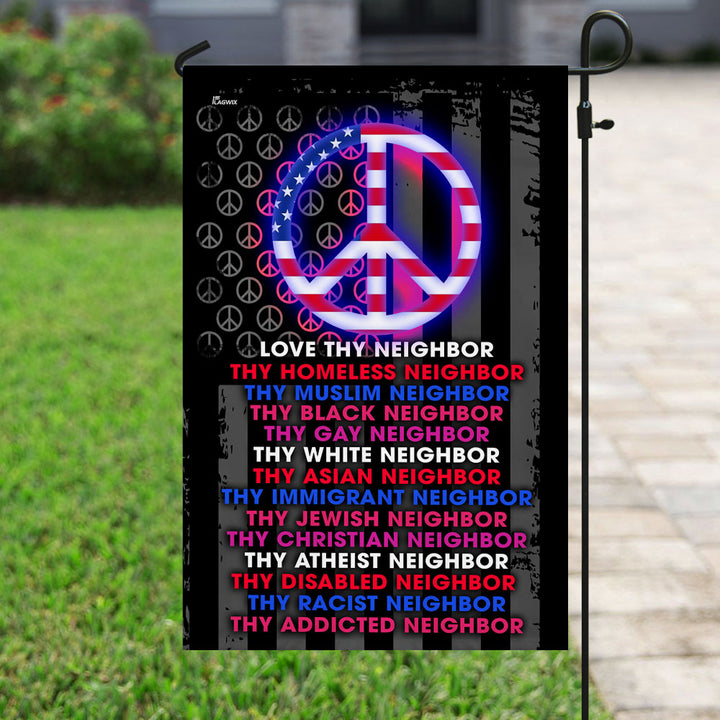 It's beautiful and hanging in front of my house. Now my neighbors know where I'm coming from. Perfect flag for someone who embraces peace in the world.