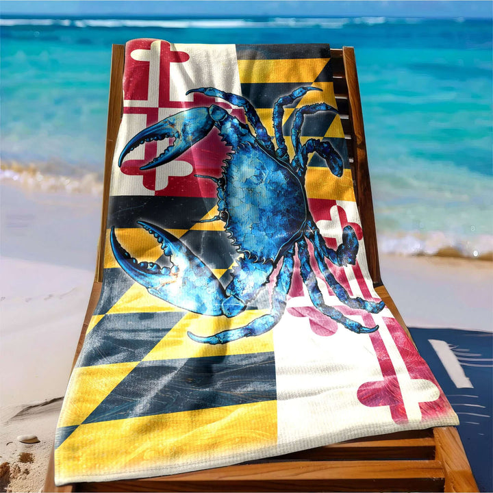 Maryland Blue Crab Coastal Summer Vibes Beach Towel