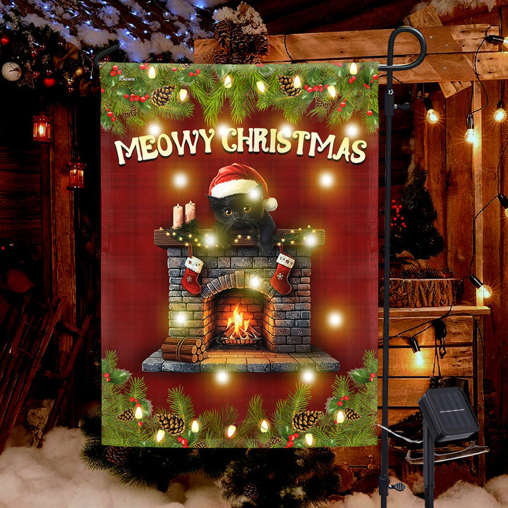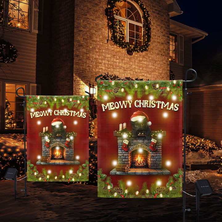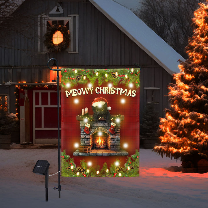 Meowy Christmas Flag | Bombay Cat with Home Heater Solar Led Garden Flag