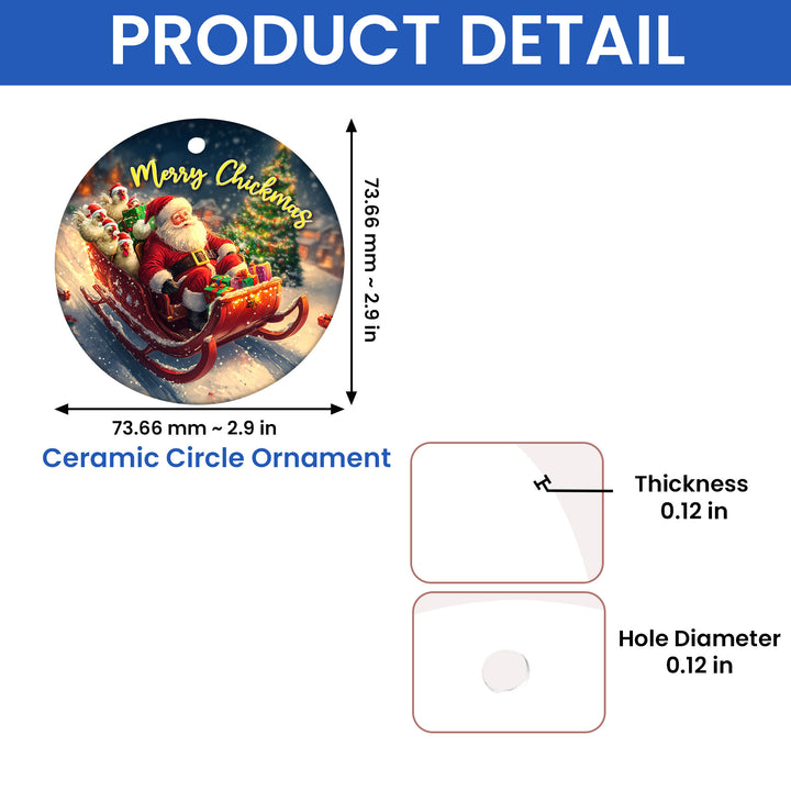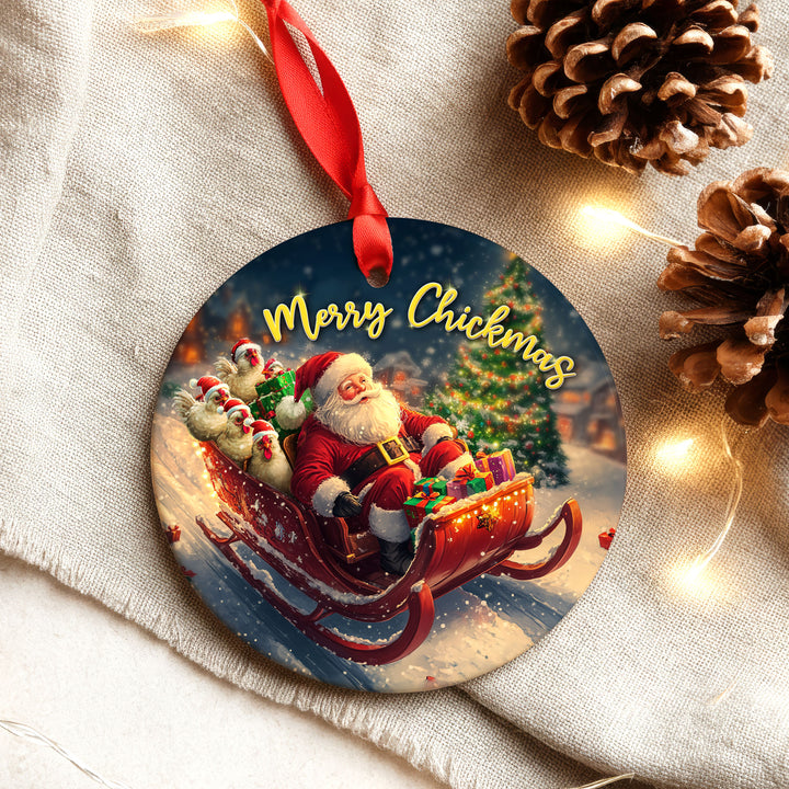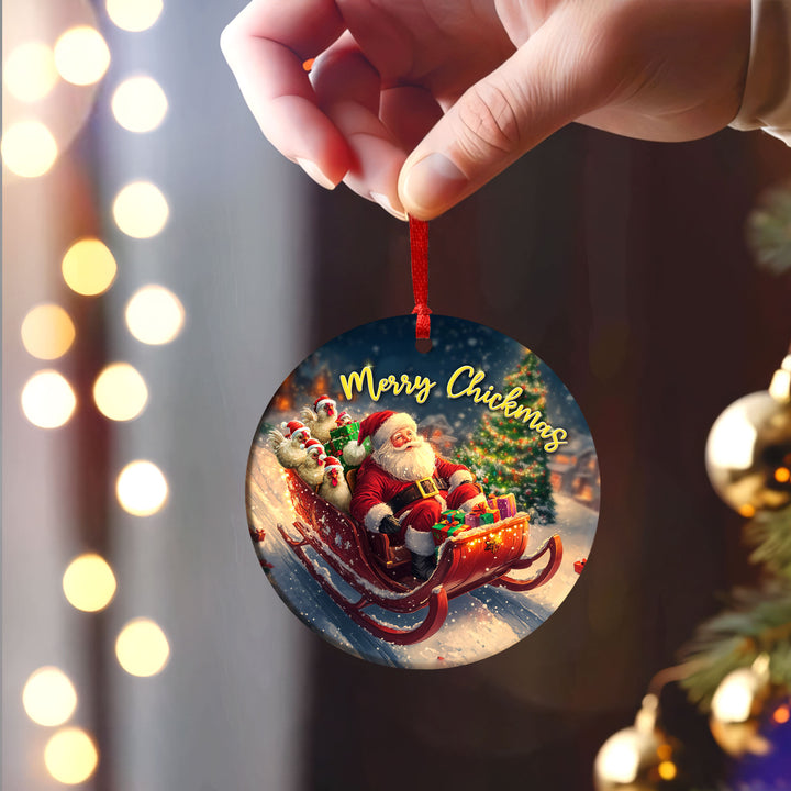 Merry Chickmas Ceramic Ornament | Chicken Santa Sleigh Holiday Tree Decor