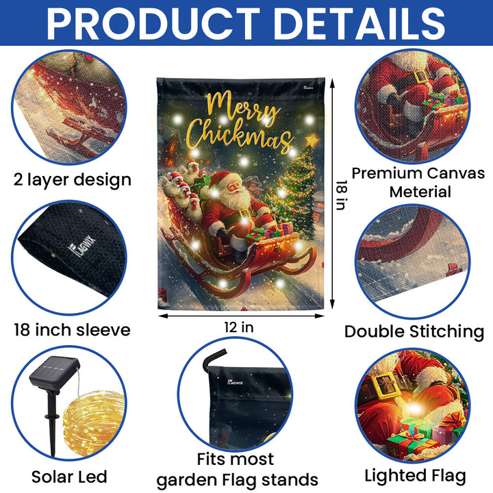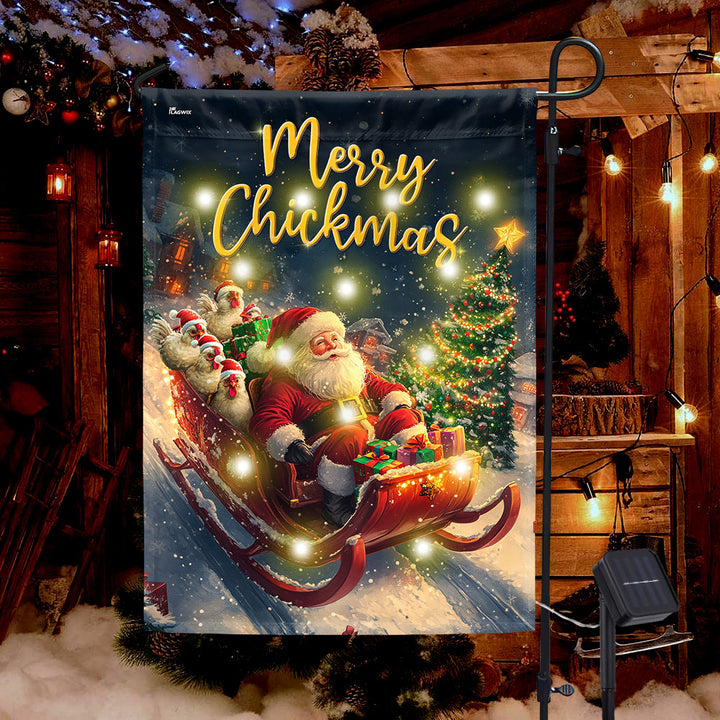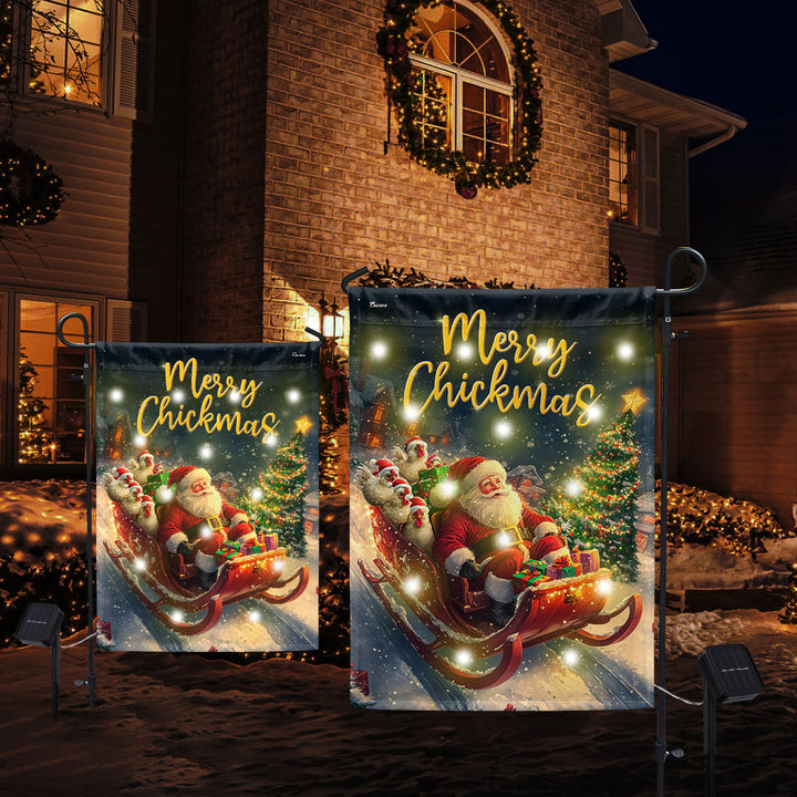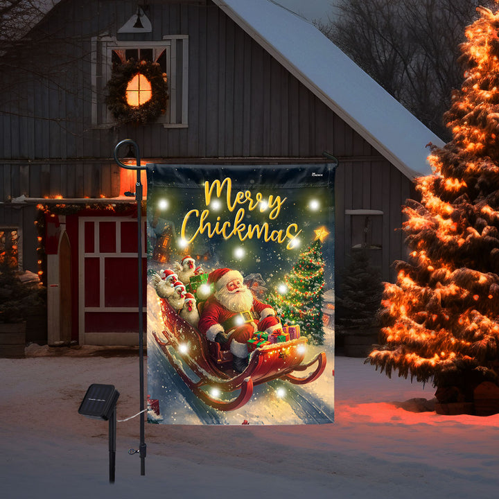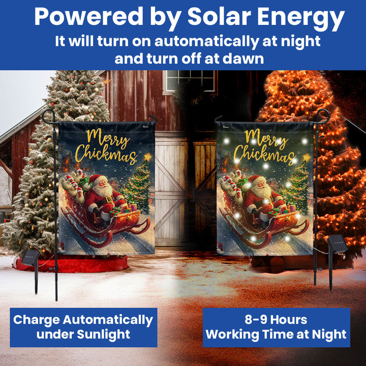 Merry Chickmas Garden Flag | Santa with Chicken Solar Led Garden Flag