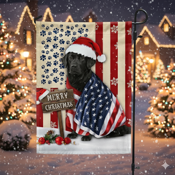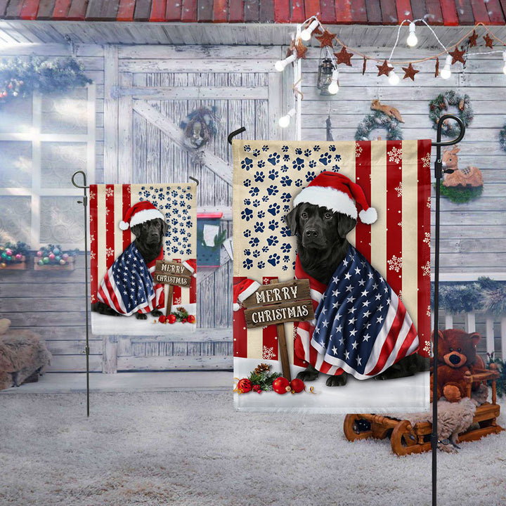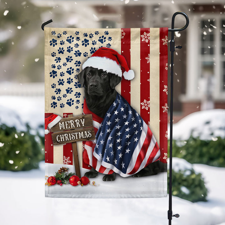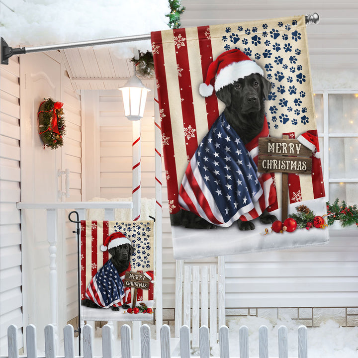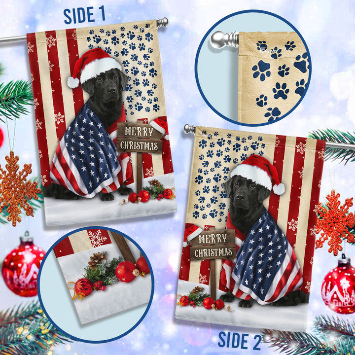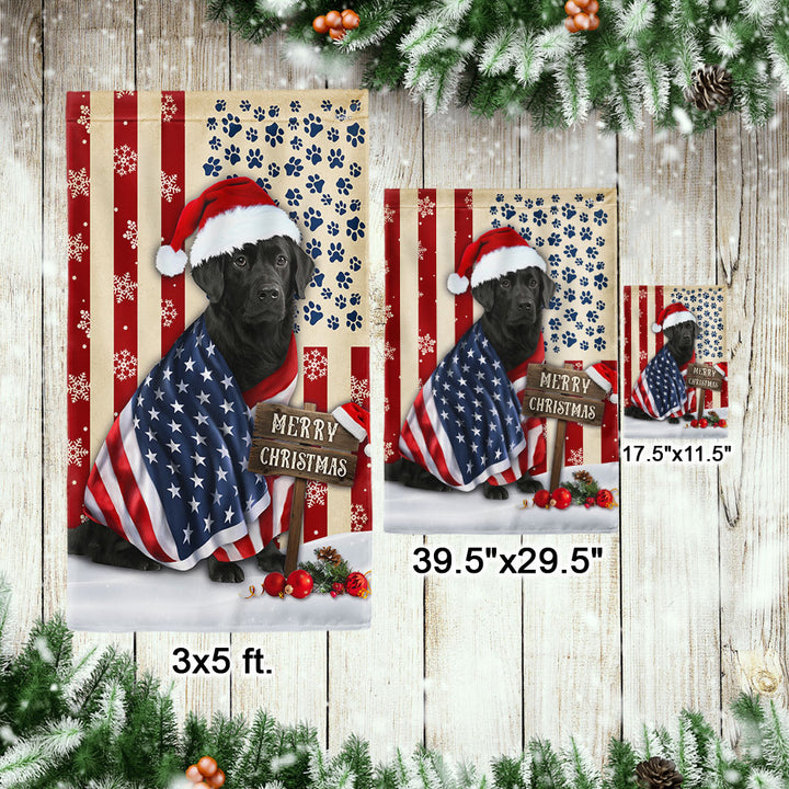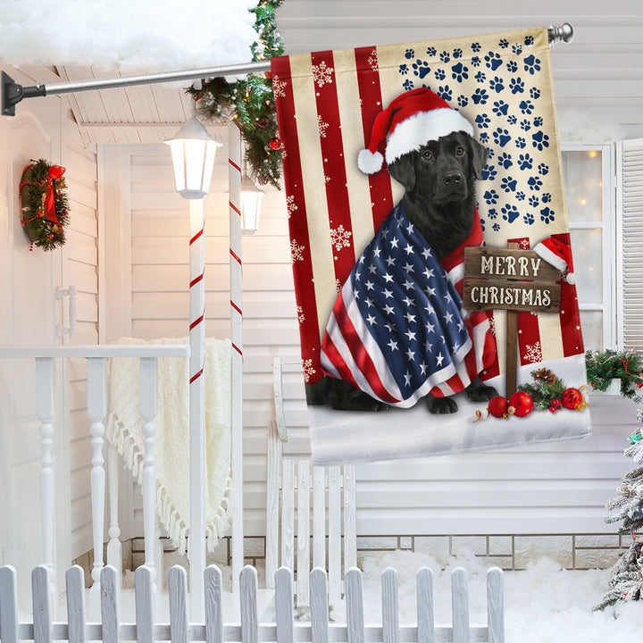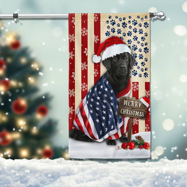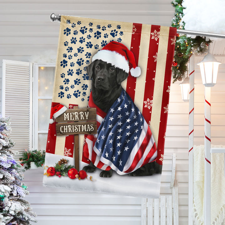Merry Christmas Flag | Patriotic Black Labrador Retriever American Flag