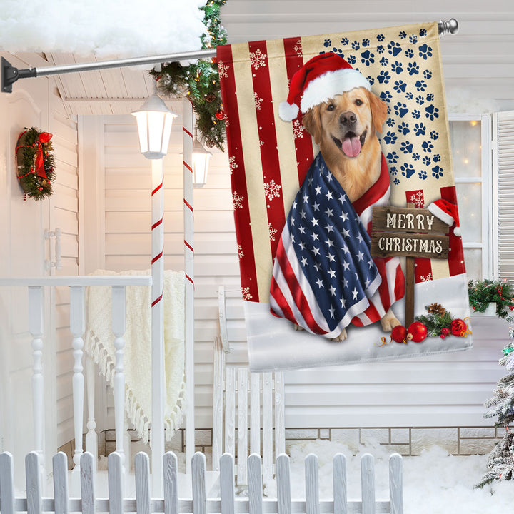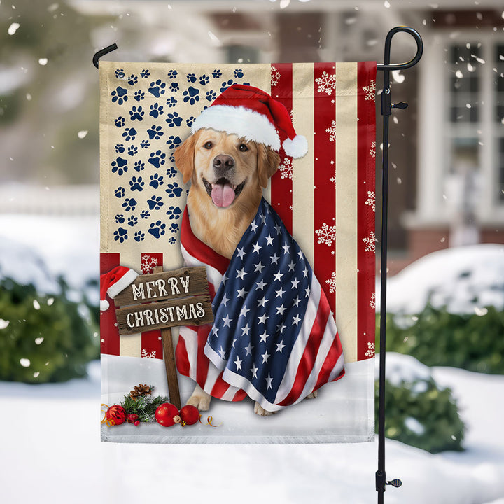 Merry Christmas Flag | Patriotic Golden Retriever American Flag