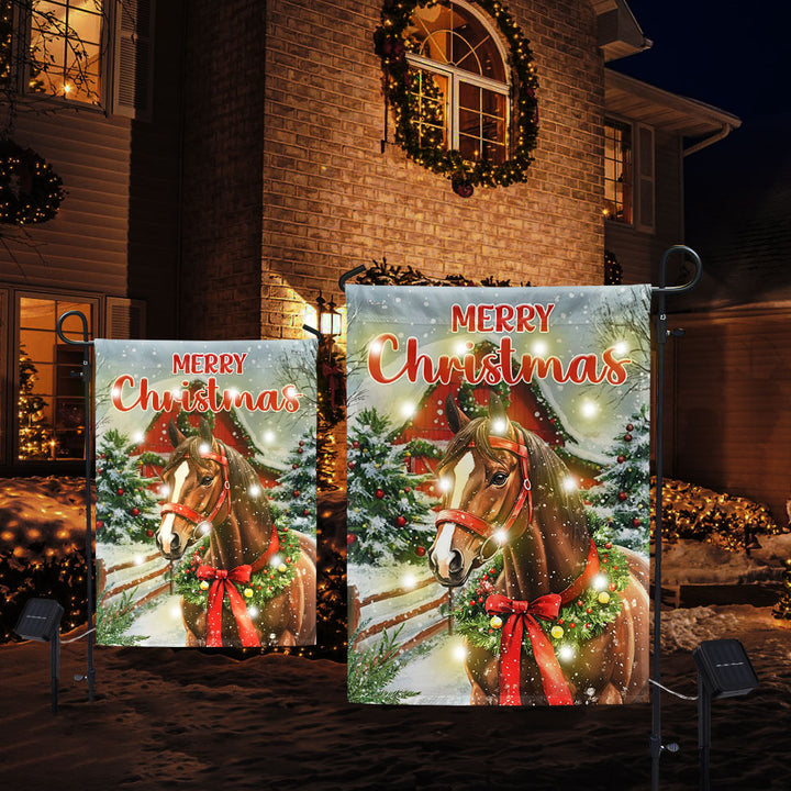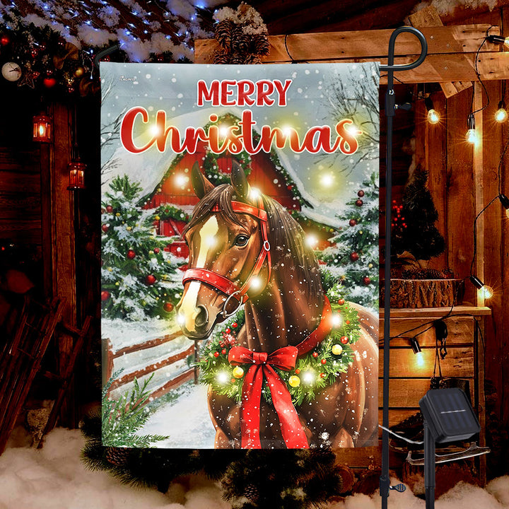 Merry Christmas Horse Solar LED Garden Flag | Red Barn Festive Decor