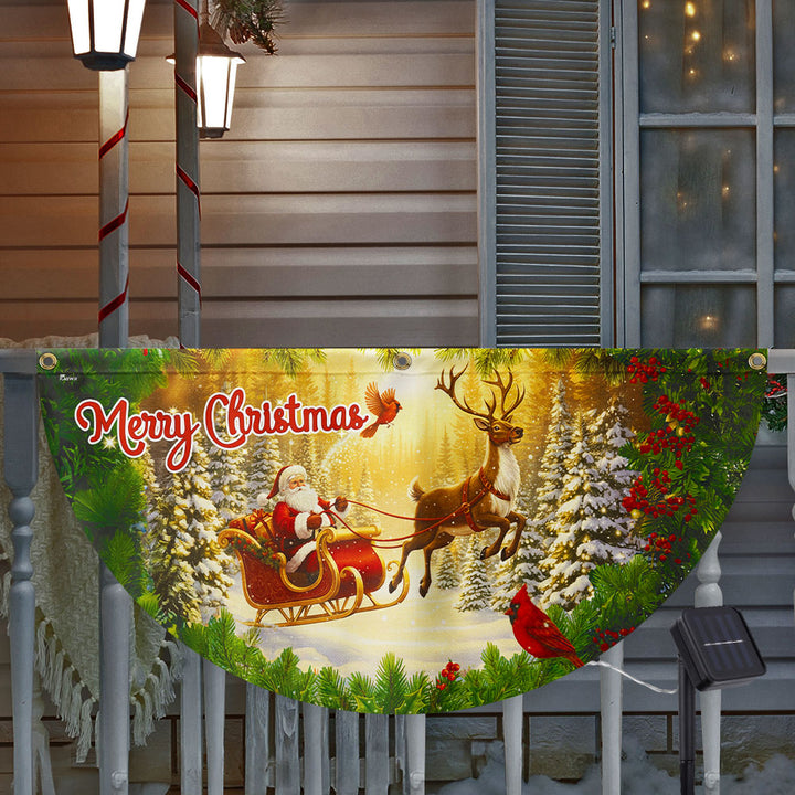 Merry Christmas Santa Claus with Sleigh and Reindeer Cardinal Solar Led Fan Flag