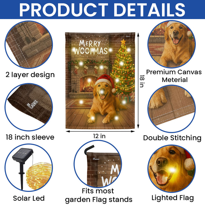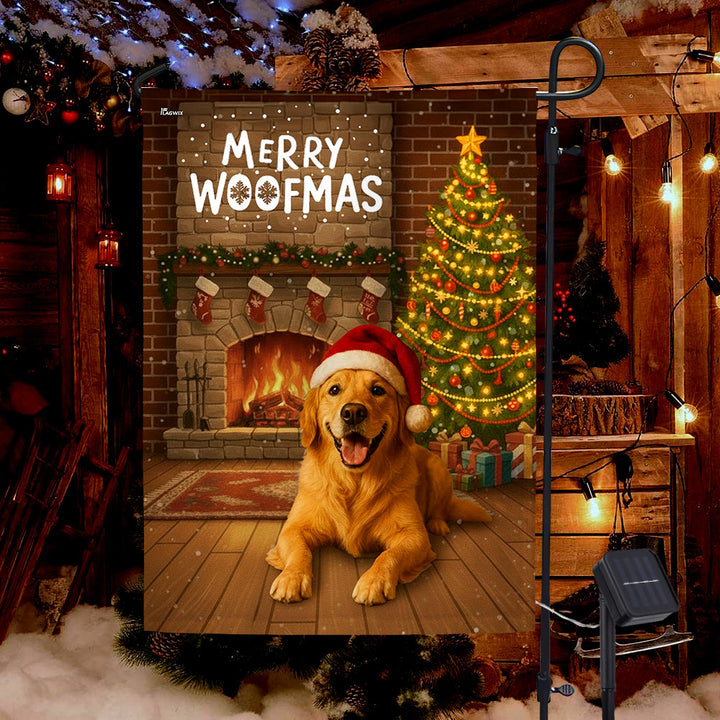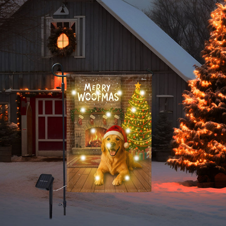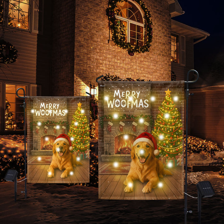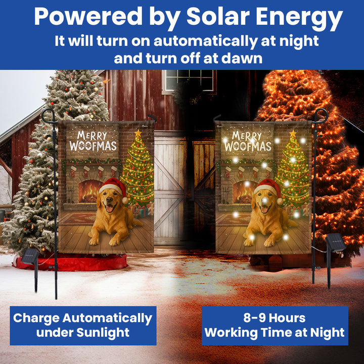 Merry Woofmas Flag | Christmas Golden Retriever Solar Garden Led Flag