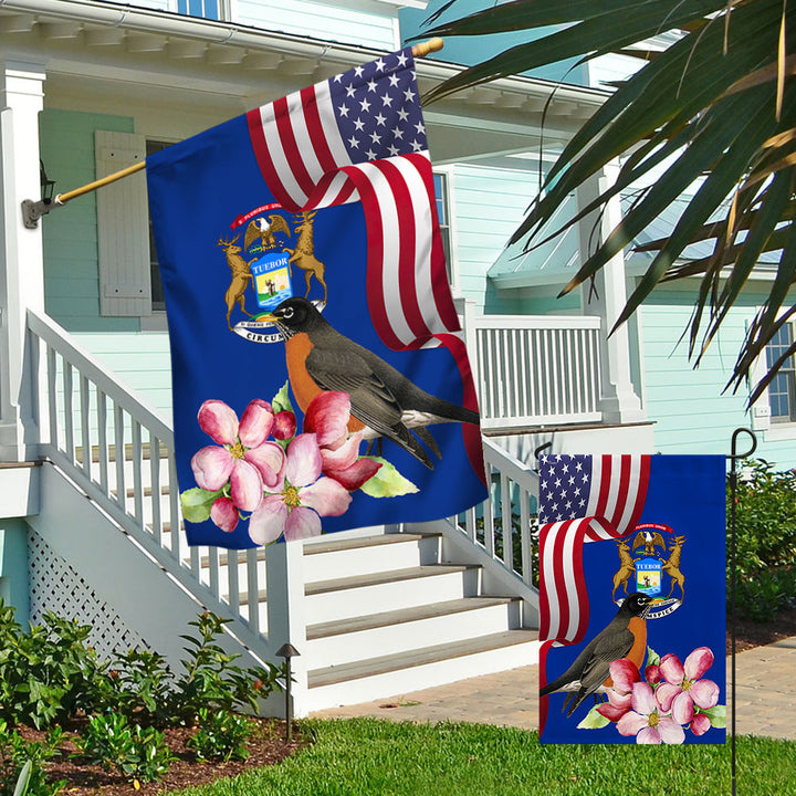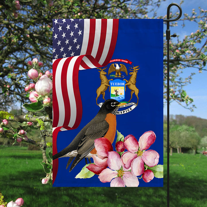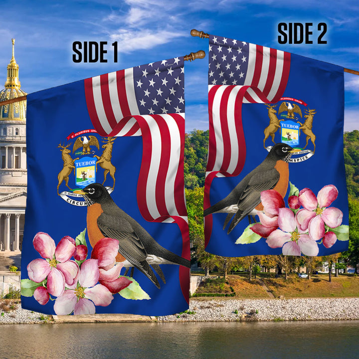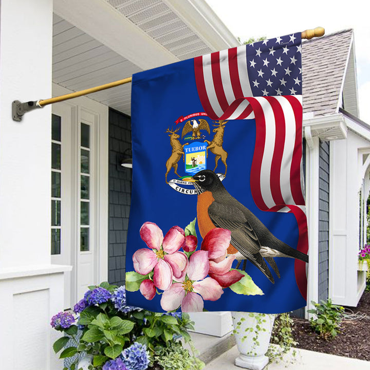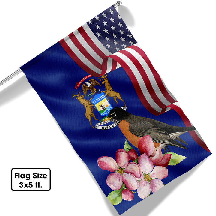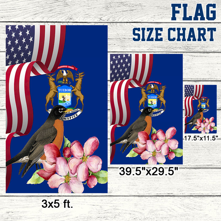 Michigan State Robin Bird and Apple Blossom Flower Flag MLN1141Fv13