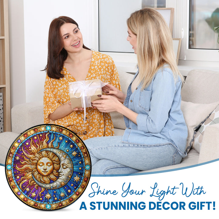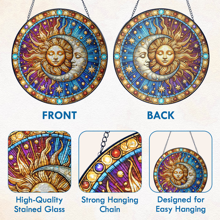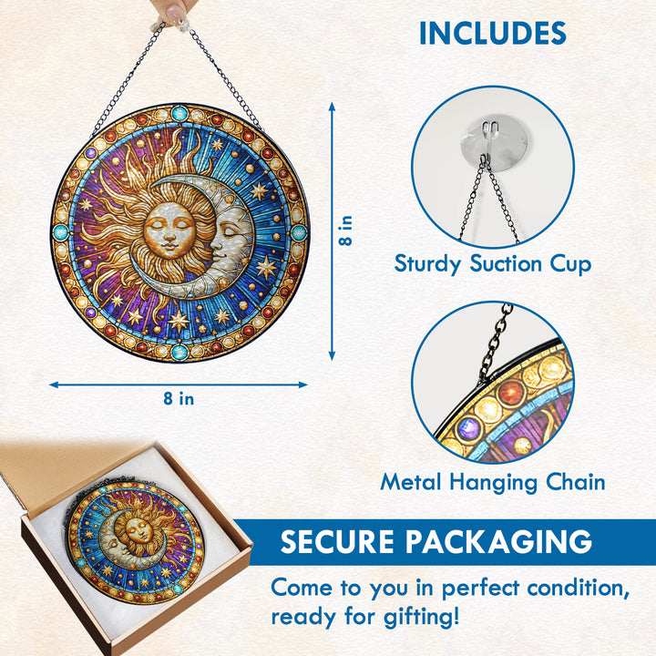 Moon Sun Stained Glass Suncatcher - Colorful Witchcraft Window Art, Handmade Celestial Hanging Ornament for Year-Round Spiritual Home Decor MLN-2031-HVN