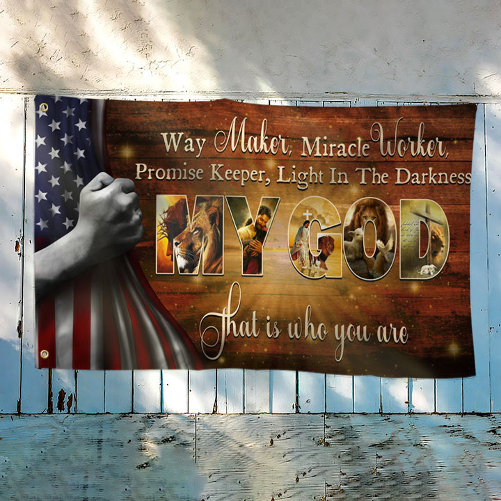 My God Way Maker Miracle Worker Grommet Flag