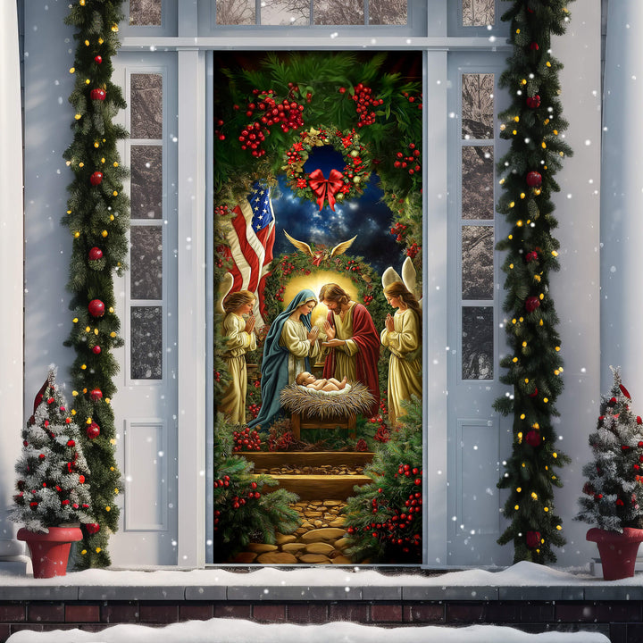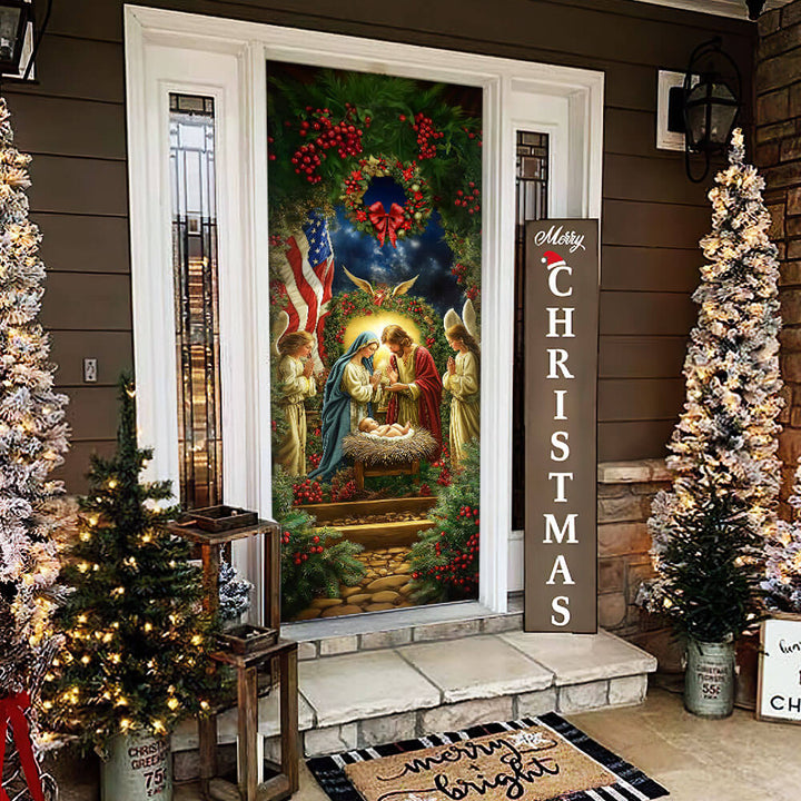 Nativity Of Jesus American Christian Christmas Door Cover 3-Day Shipping