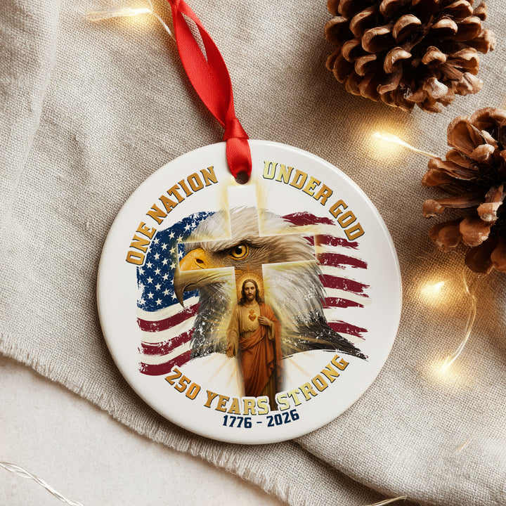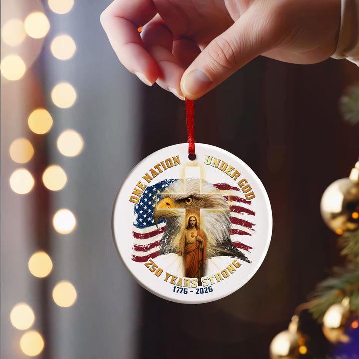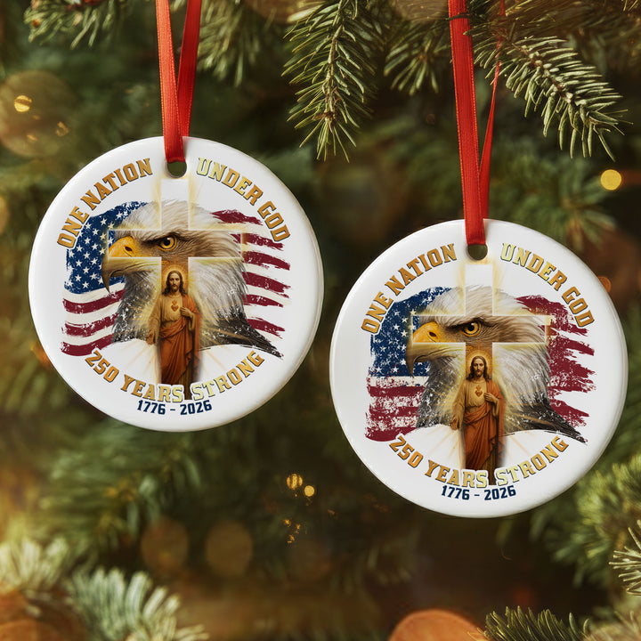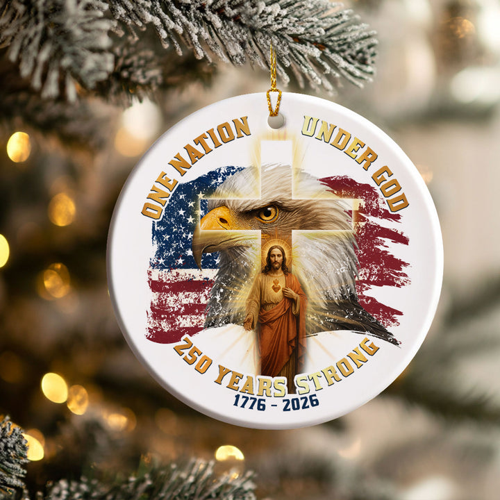 One Nation Under God Ornament Eagle Jesus Cross 250 Years Strong
