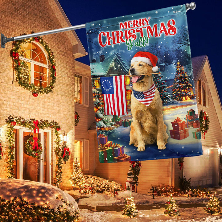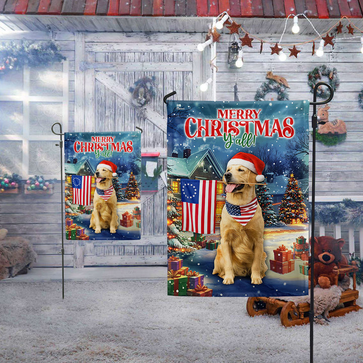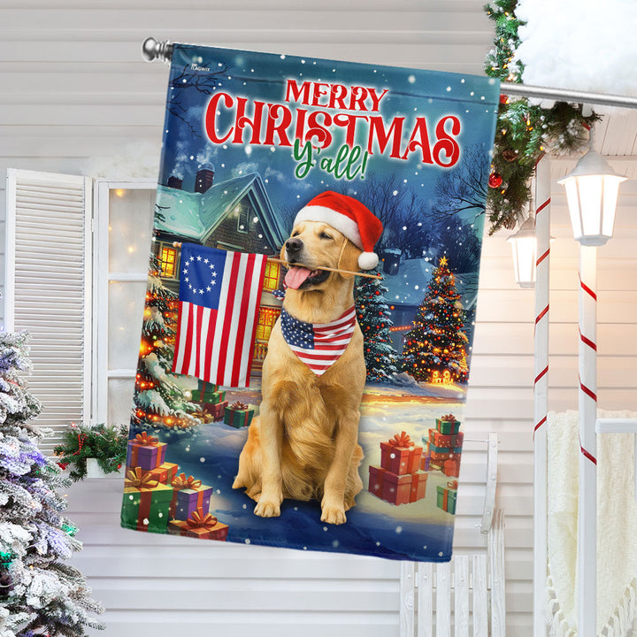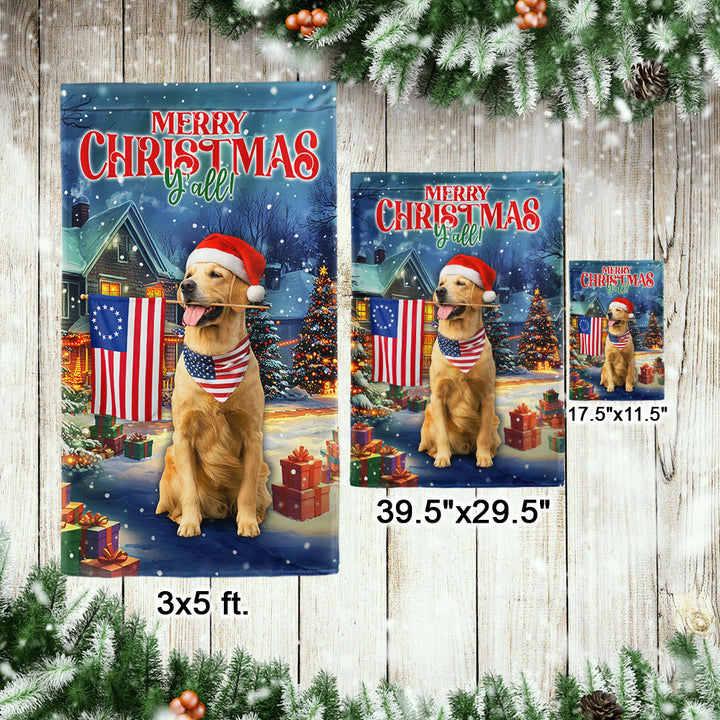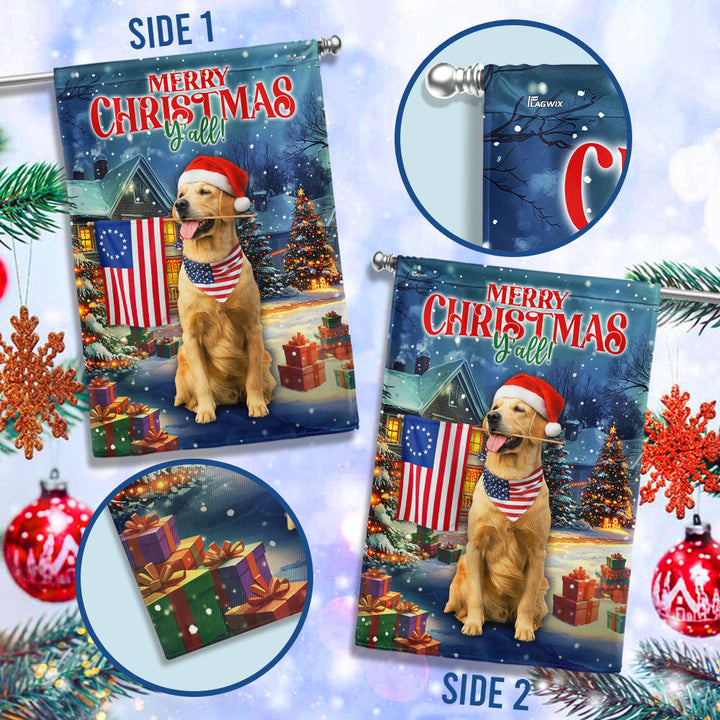 Patriotic Golden Retriever Christmas Flag | Betsy Ross American Flag Decor