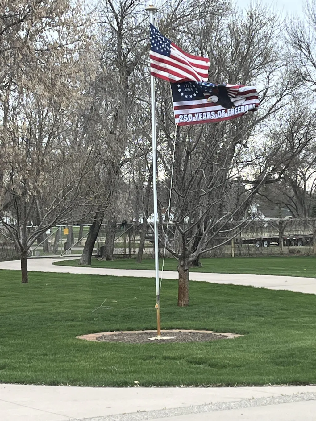 The flag arrived in perfect condition and is now gracefully blowing in the wind by our front doors