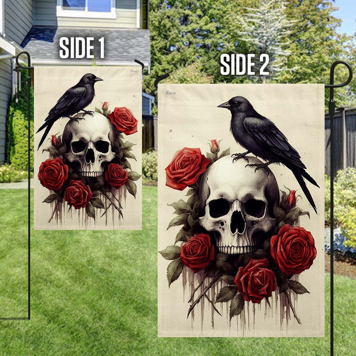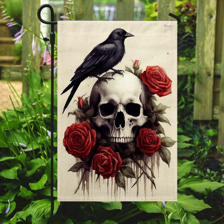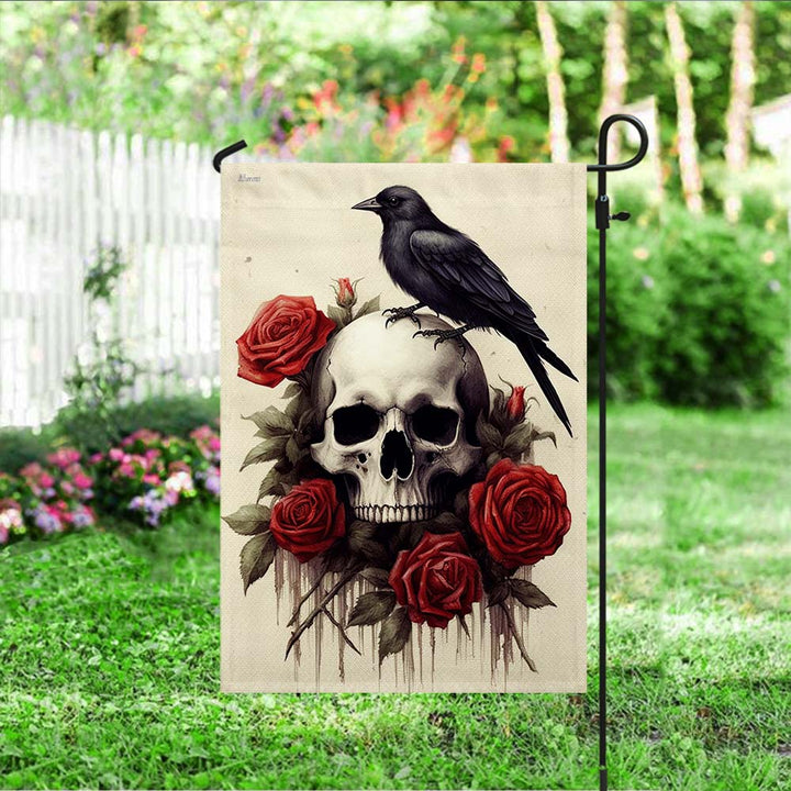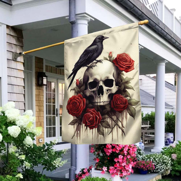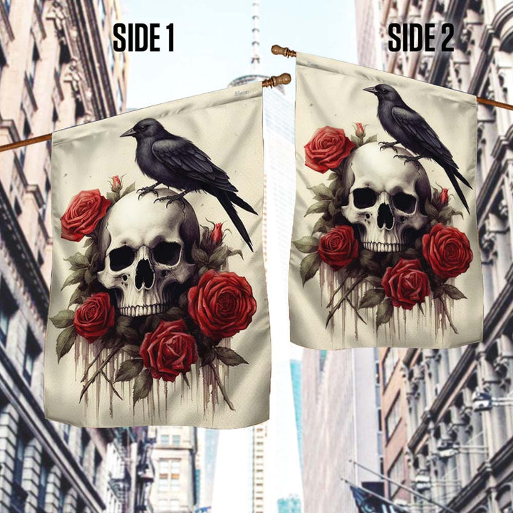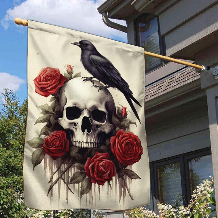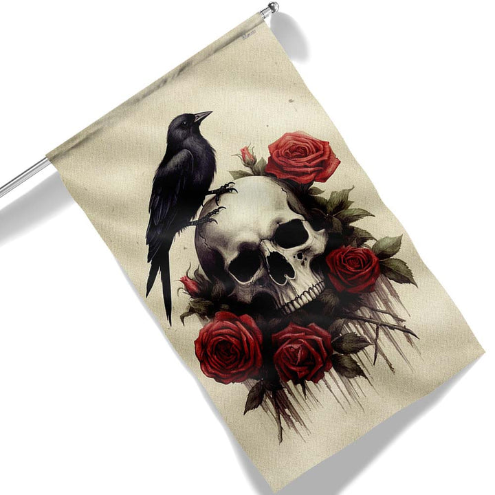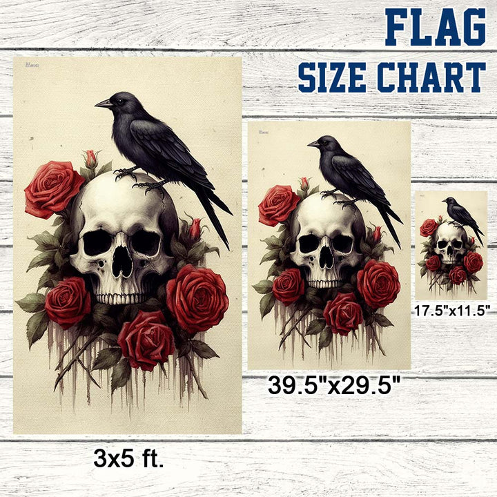 Raven Skull Roses Spooky Vibes Halloween Flag